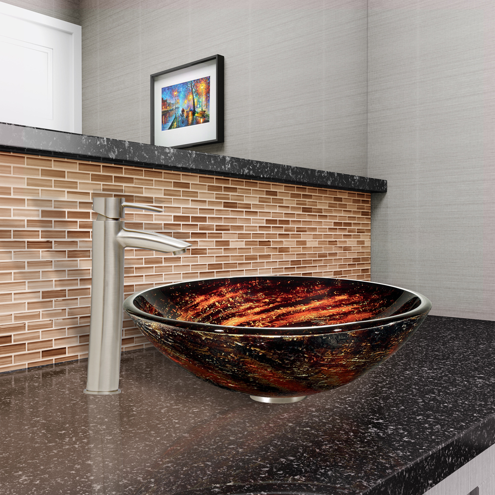The VIGO Northern Lights Glass Vessel Sink and Shadow Faucet Set in Brushed Nickel Finish will say a lot about your taste and style. You and Your friends are sure to love it!.