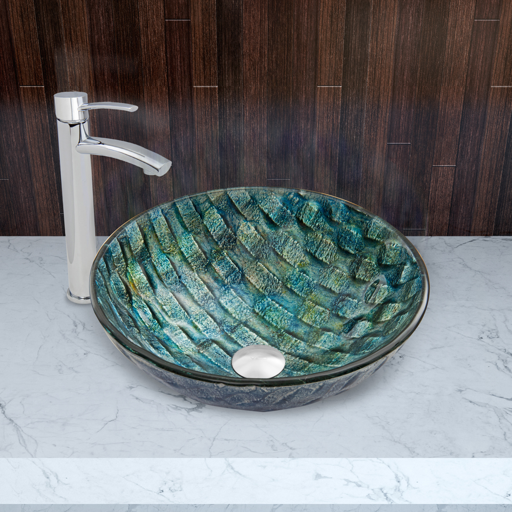 Imagine ocean blue waves in your beachy bathroom. The gorgeous Oceania vessel sink by VIGO mixes aqua blue and sea green on a wavy pattern to bring the ocean to your bathroom.
