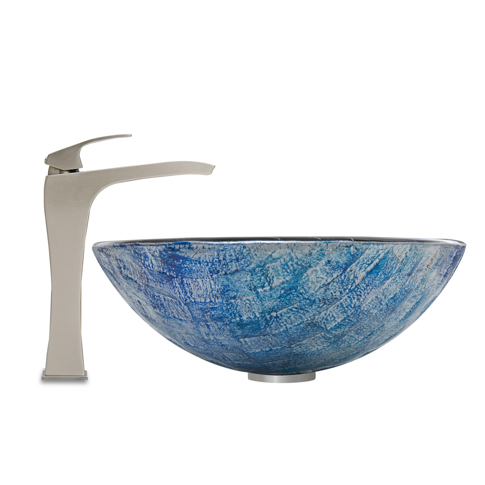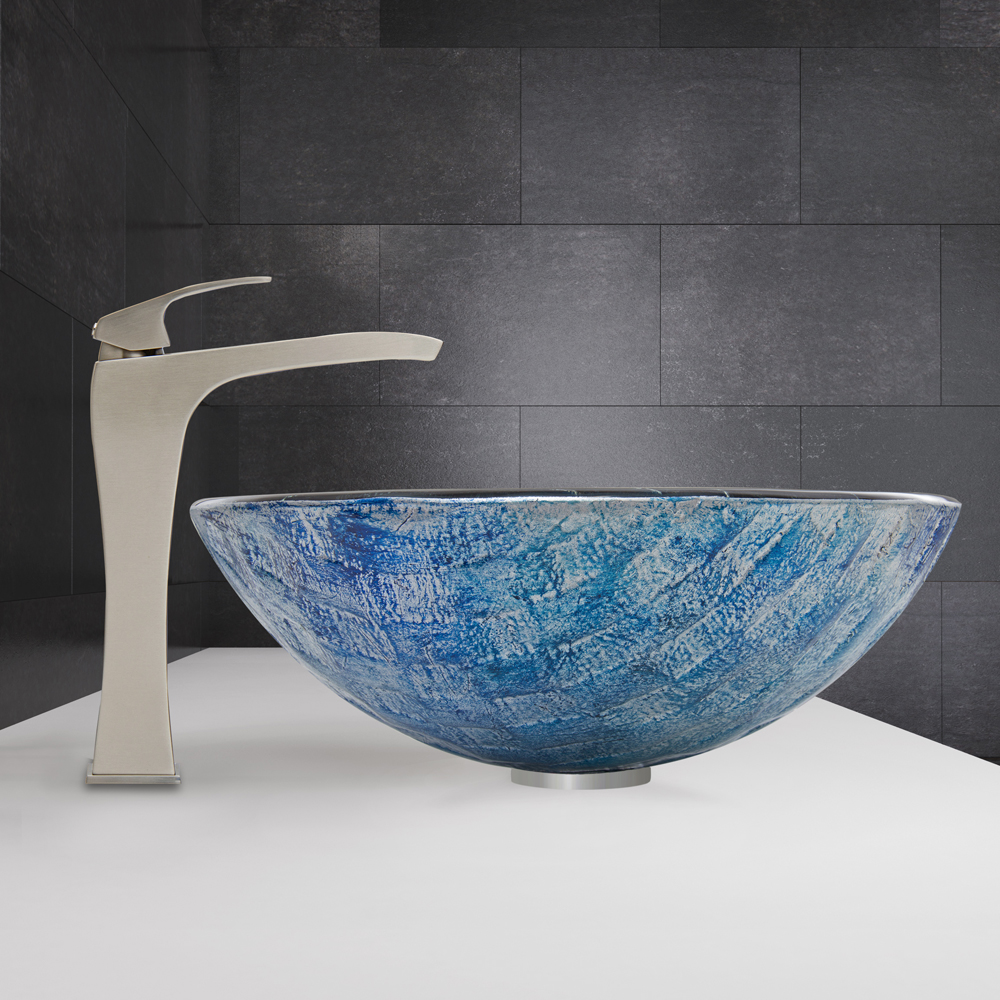 The VIGO Oceania Glass Vessel Sink and Blackstonian Faucet Set in Brushed Nickel Finish is certain to completely transform your bathroom into something extraordinary.