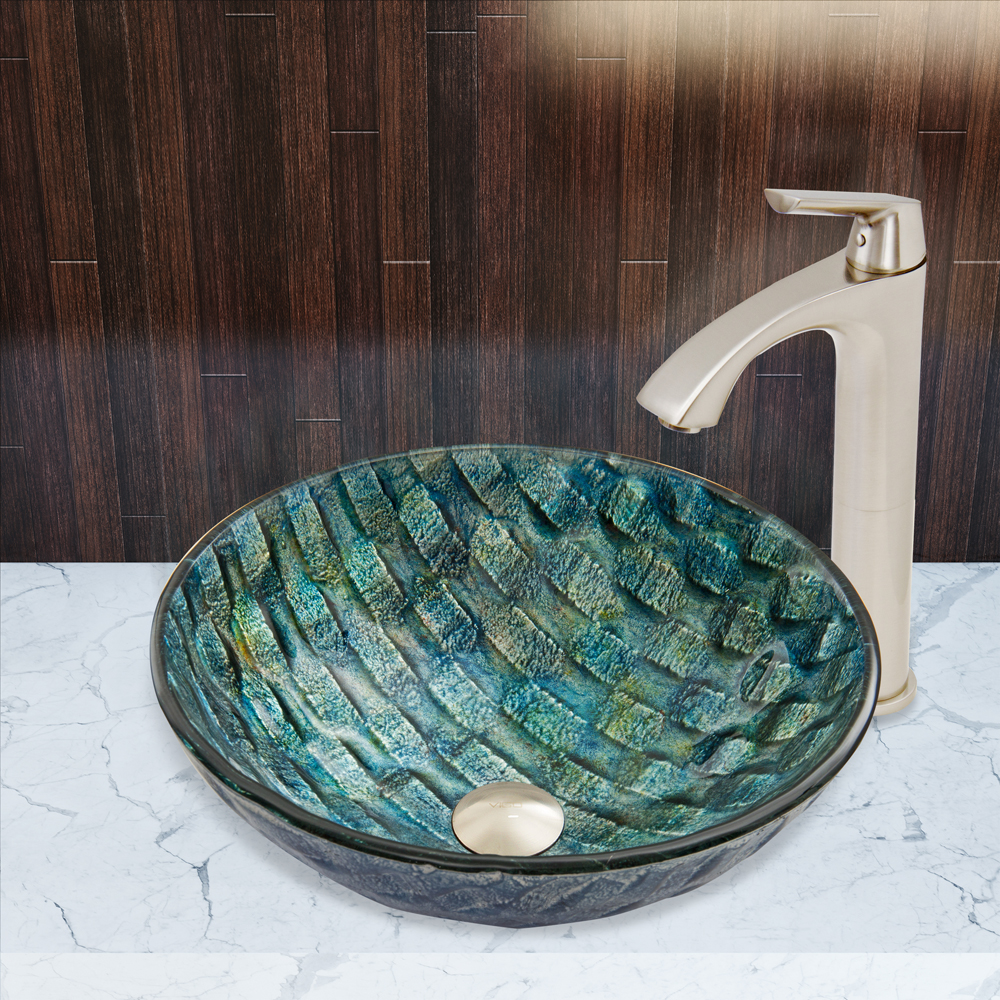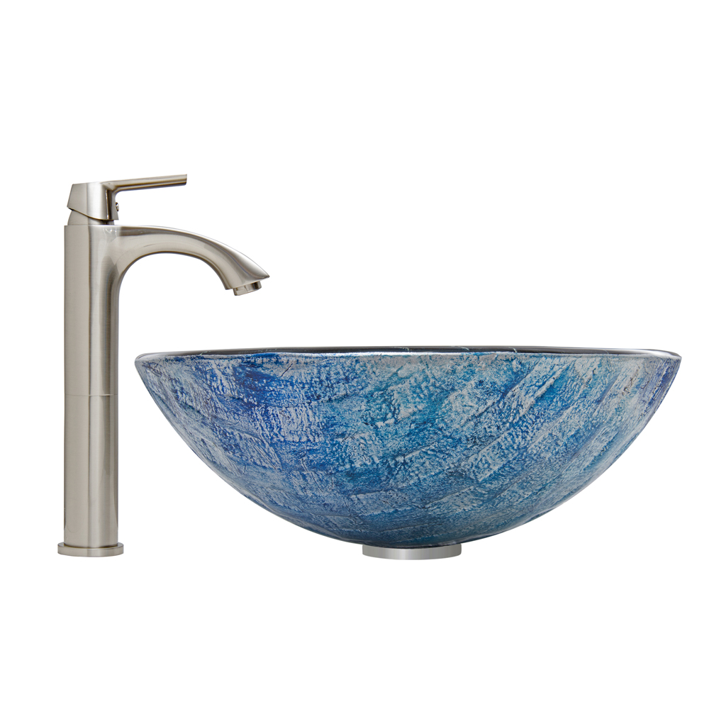 The VIGO Oceania Glass Vessel Sink and Linus Faucet Set in Brushed Nickel Finish is certain to completely transform your bathroom into something extraordinary.