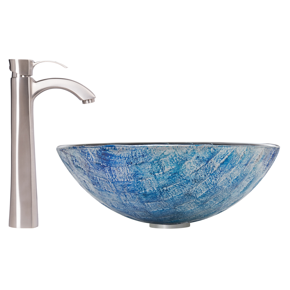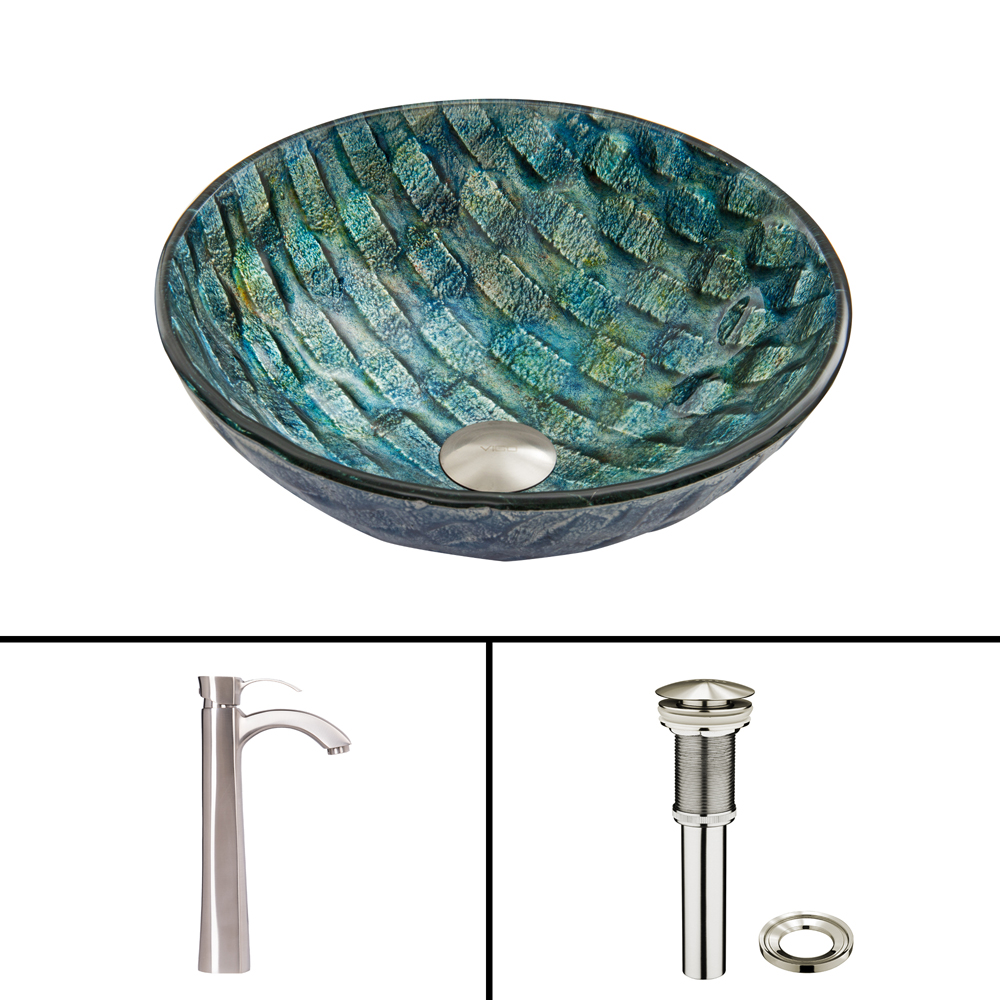 The VIGO Oceania Glass Vessel Sink and Olus Faucet Set in Brushed Nickel is certain to completely transform your bathroom into something extraordinary.