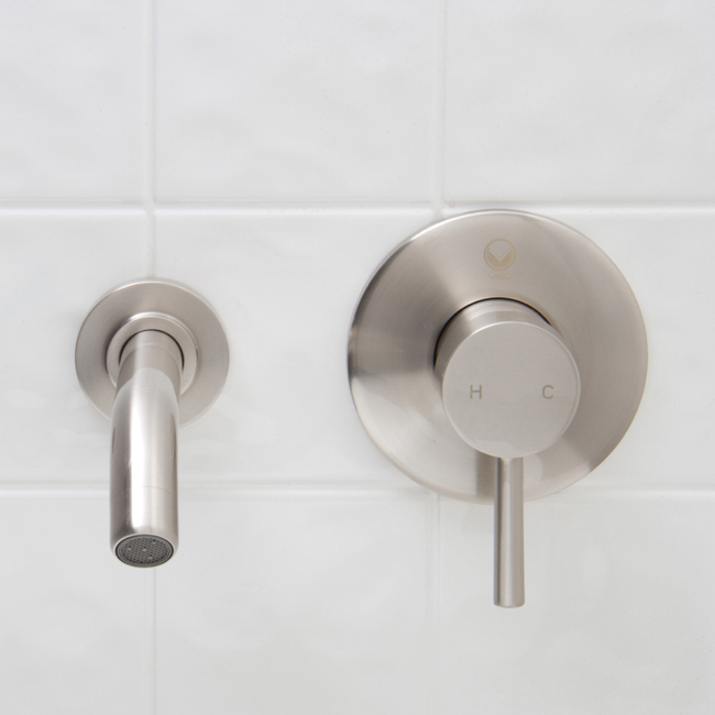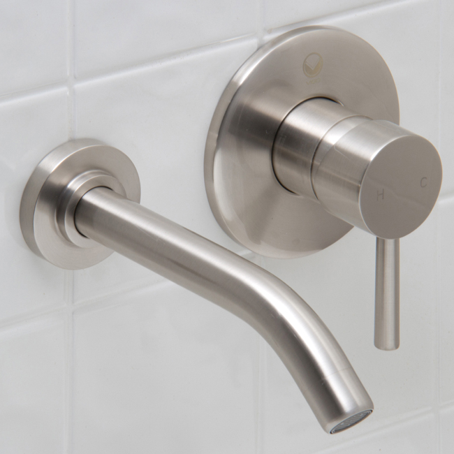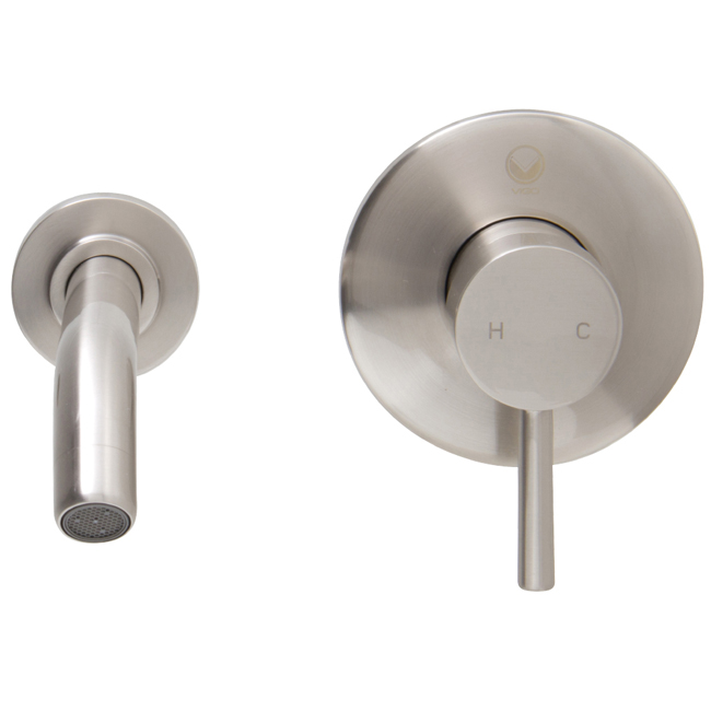 The VIGO Olus single lever wall mount faucet in Brushed Nickel finish brings a practical, yet modern design to your bathroom.