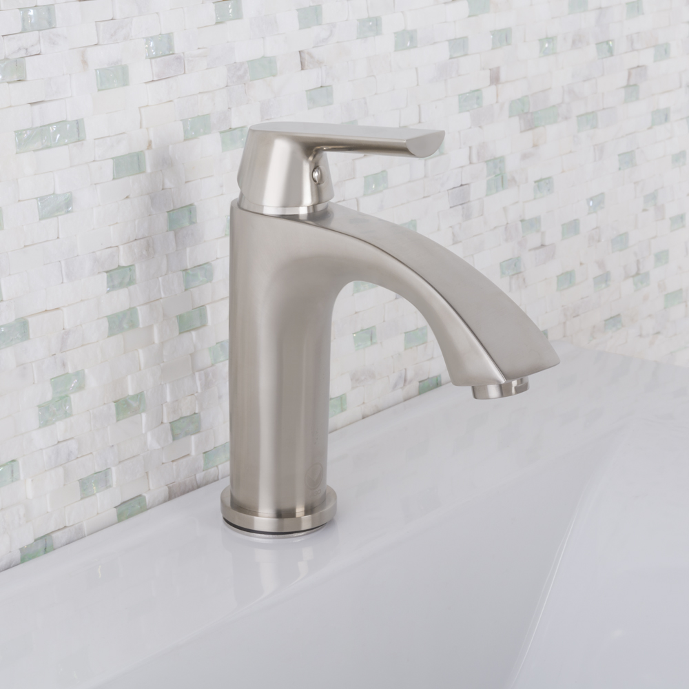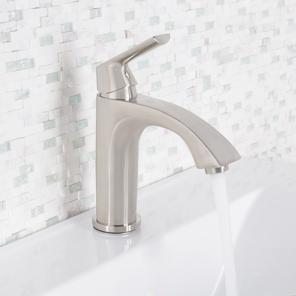 Simple elegance is at your fingertips with this gracefully curved Penela single-hole bathroom faucet. Outfitted with standard plumbing lines, this Brushed Nickel beauty is smart choice for a quick renovation project, or a whole new room.