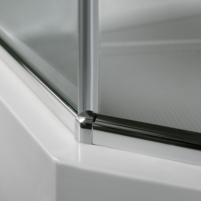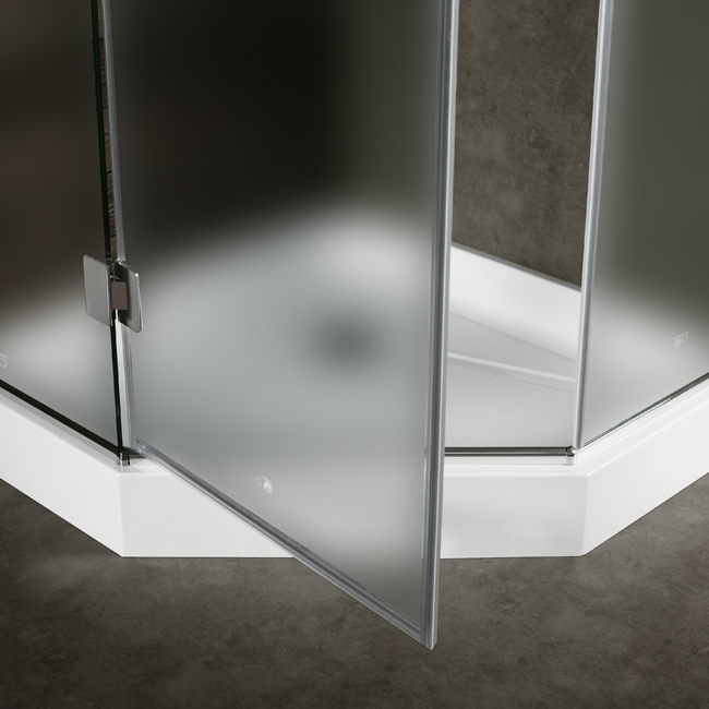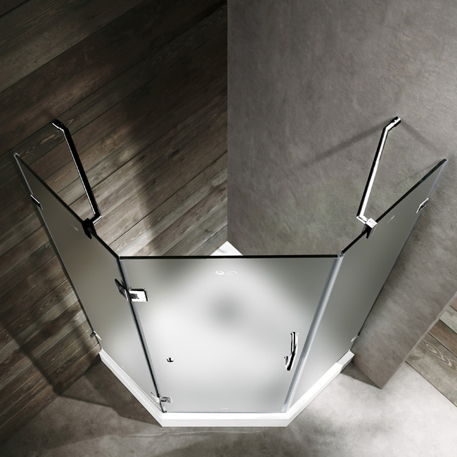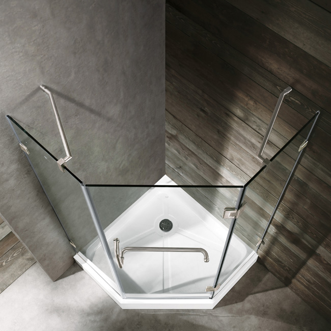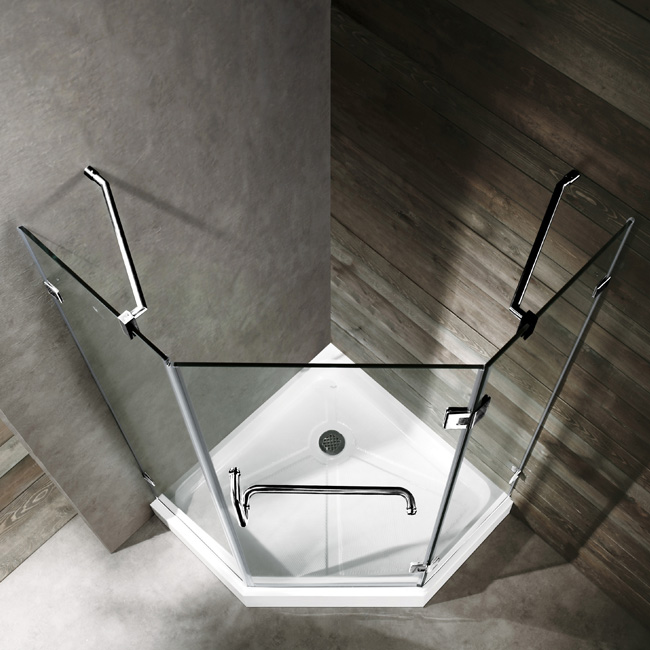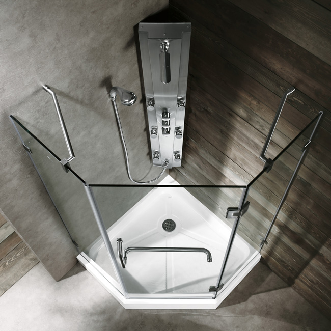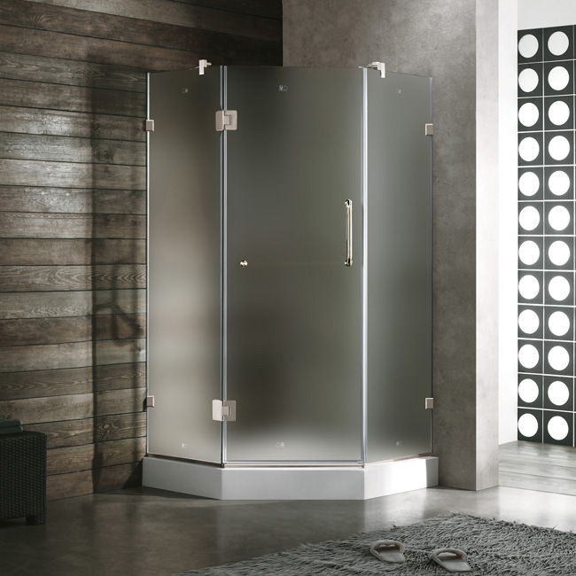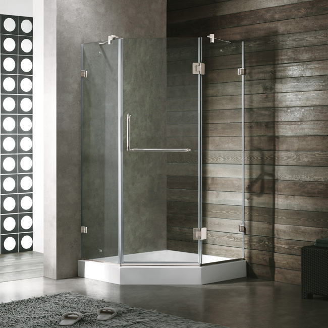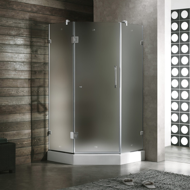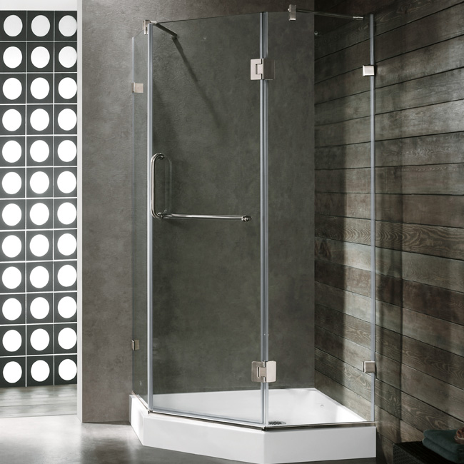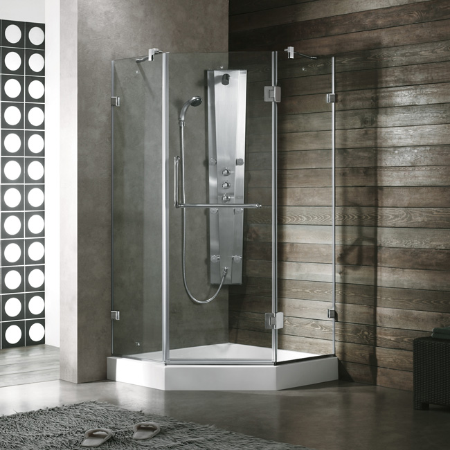 Both dramatic and space-saving, the Vigo frameless neo-angle shower enclosure creates a beautiful focal point for your bathroom.