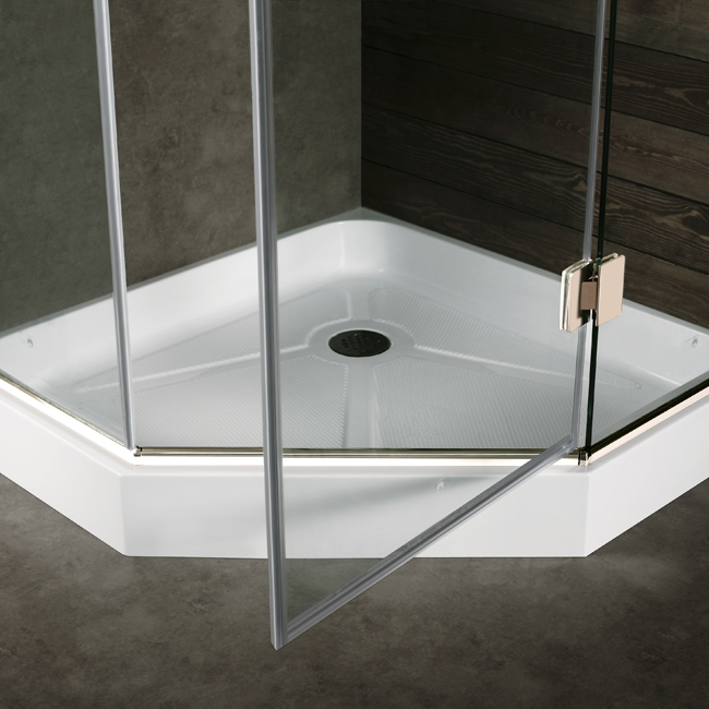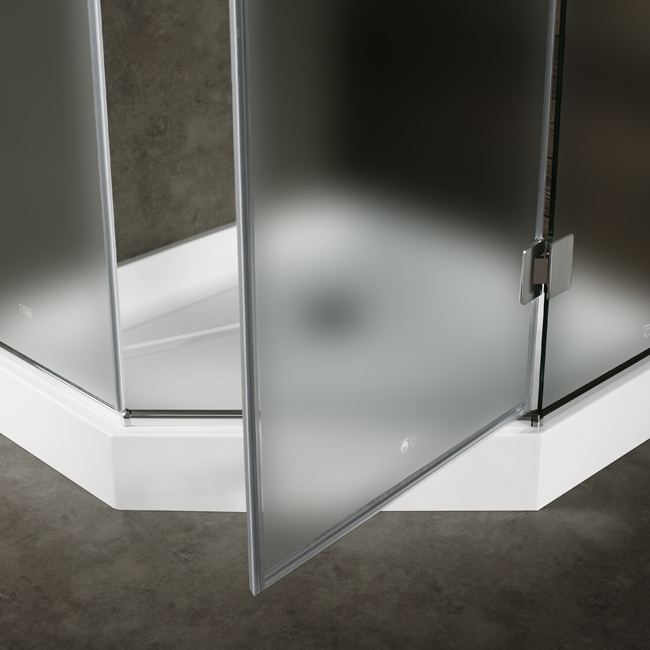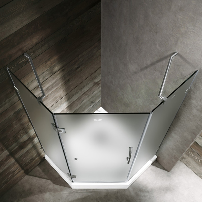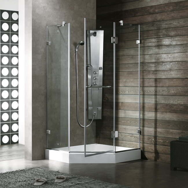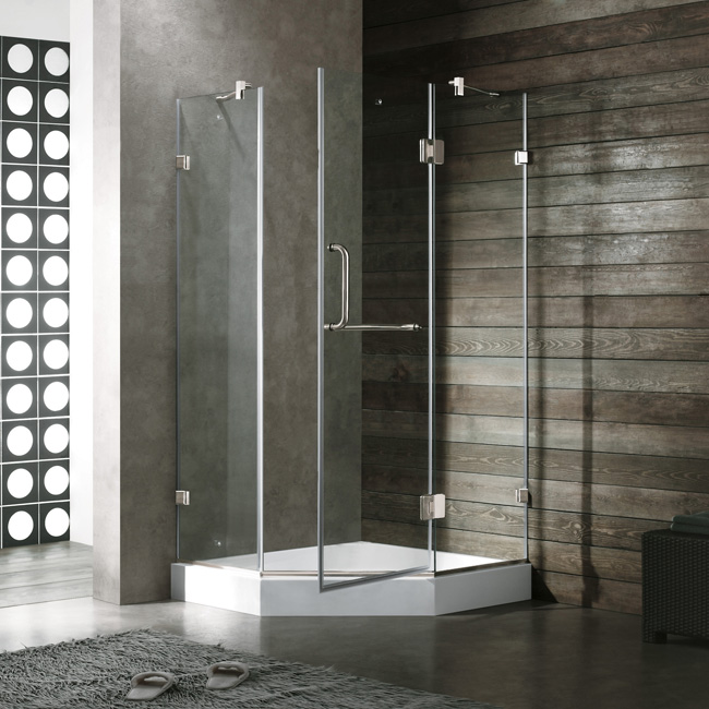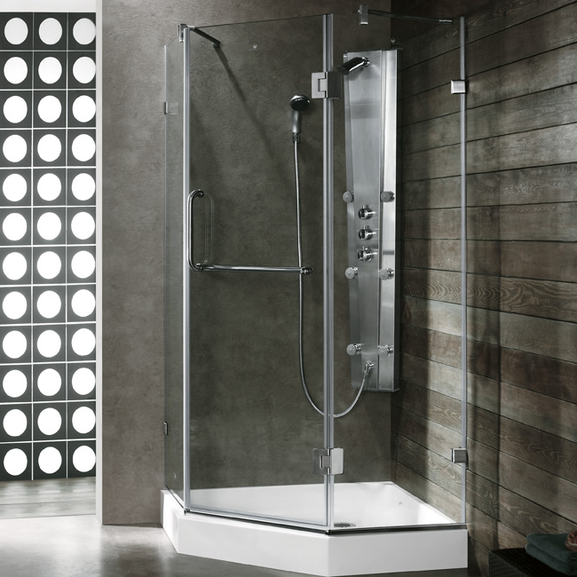 Both dramatic and space-saving, the Vigo frameless neo-angle shower enclosure creates a beautiful focal point for your bathroom.