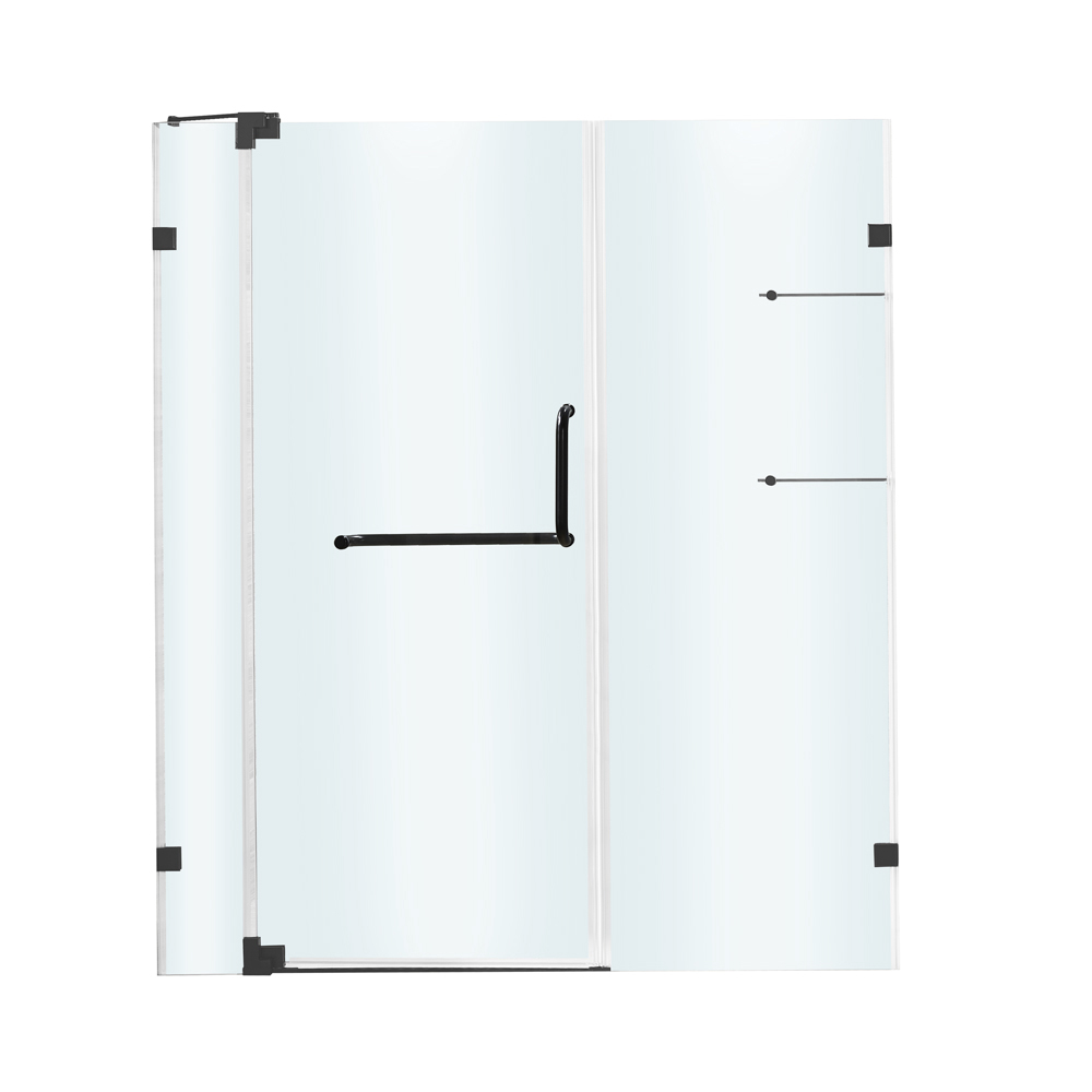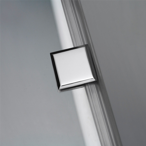 Full-length clear seals make the shower waterproof where door and side panel overlap.