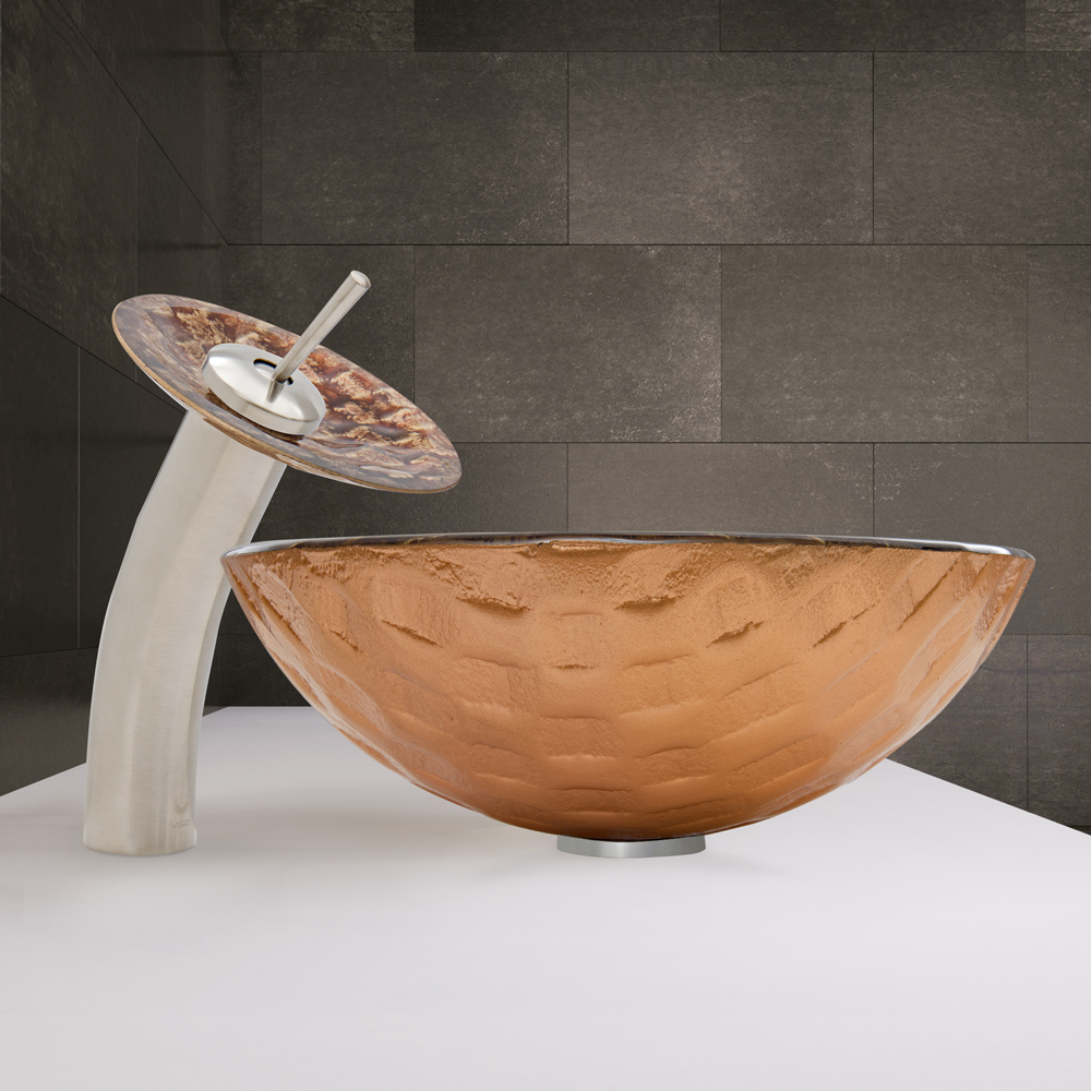 The VIGO Playa Glass Vessel Sink and Waterfall Faucet Set in Brushed Nickel Finish is sure to make any bathroom completely unforgettable.