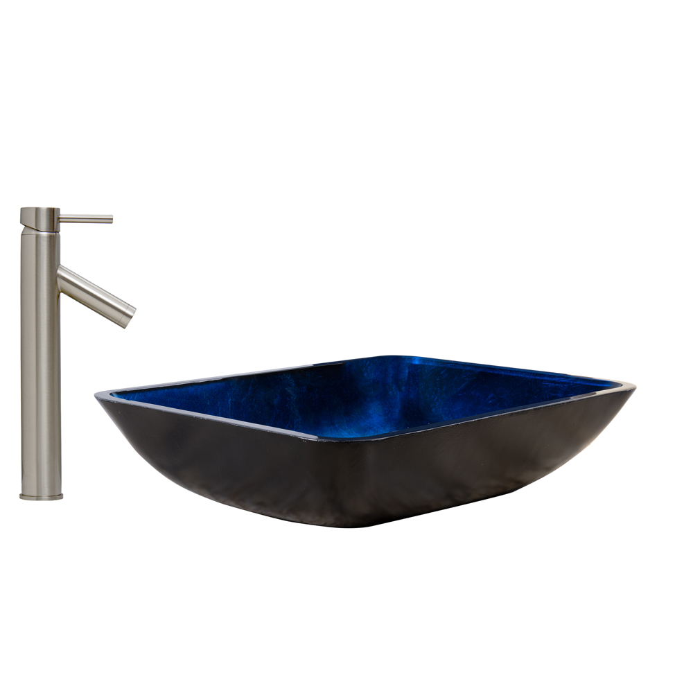 The VIGO Rectangular Turquoise Water Glass Vessel Sink and Dior Faucet Set in Brushed Nickel Finish will turn your bathroom into an exotic and sought after destination.