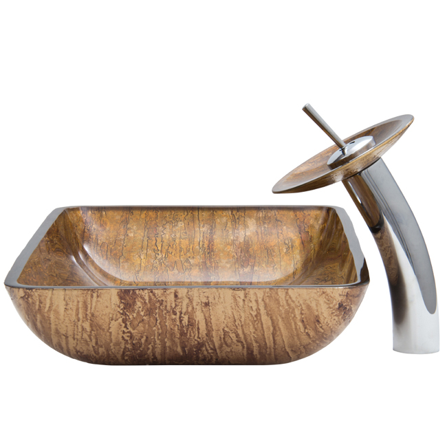 matching waterfall faucet set will bring the warm hues of a sunset into your home.