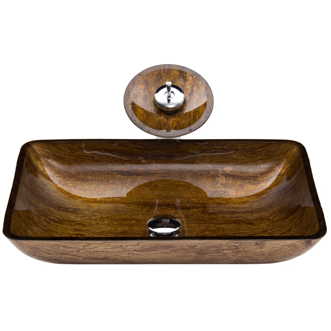 The VIGO Rectangular Amber Sunset glass vessel sink and