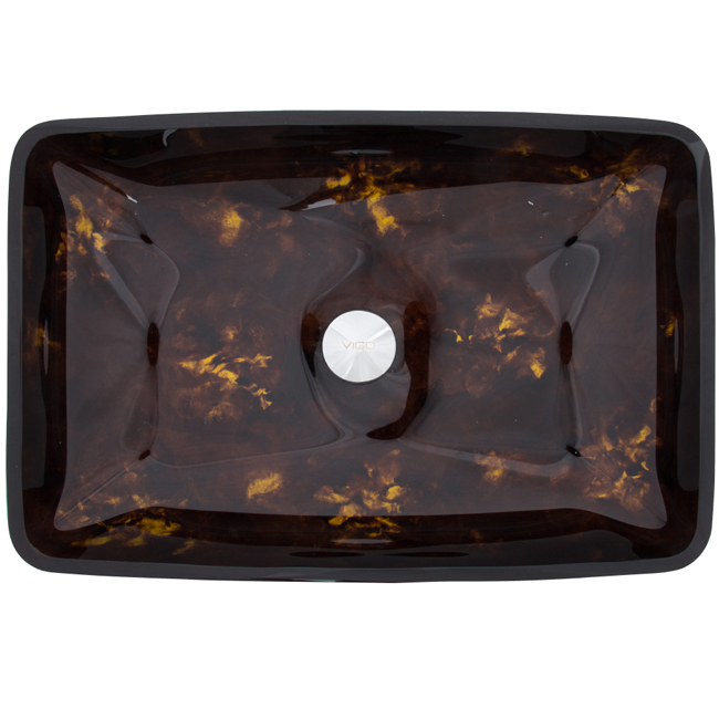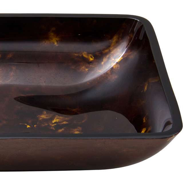 The VIGO Rectangular Brown and Gold Fusion glass vessel sink features tones of
