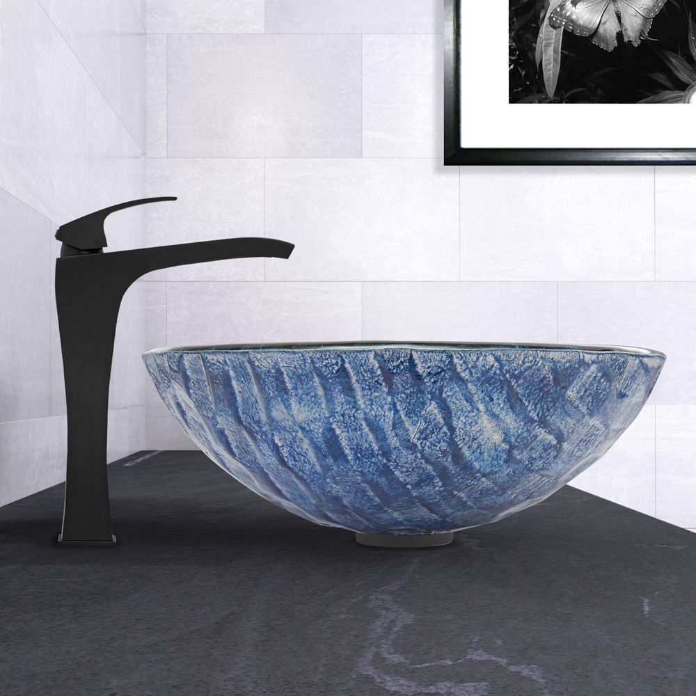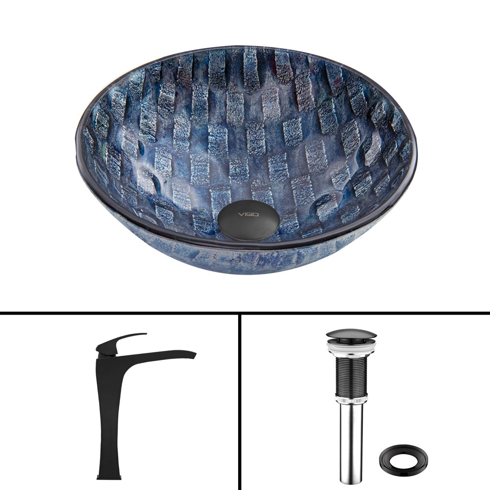 The VIGO Rio Glass Vessel Sink and Milo Faucet Set in Matte Black Finish will have your bathroom flowing with design and style.