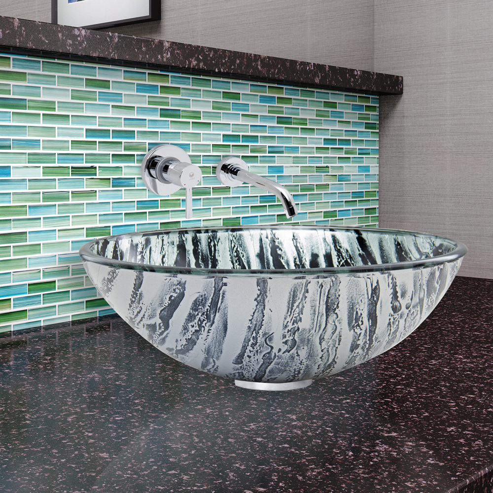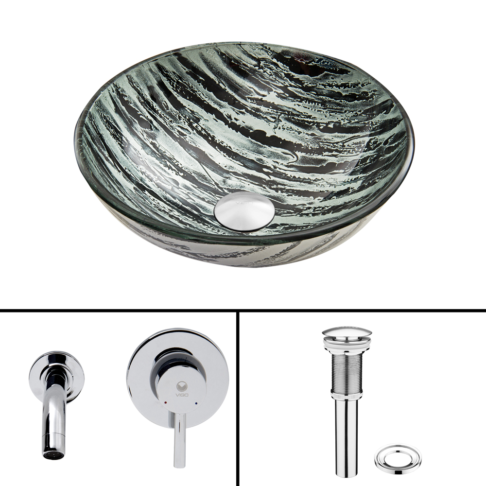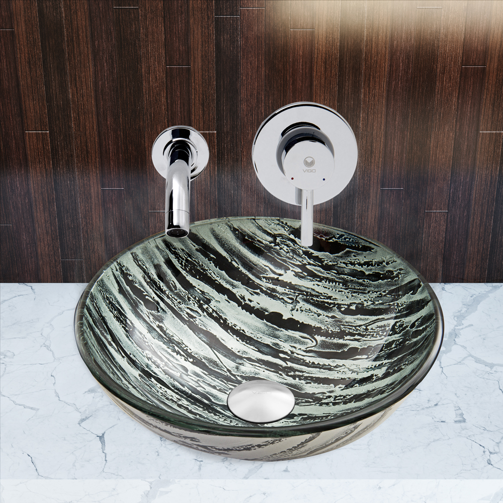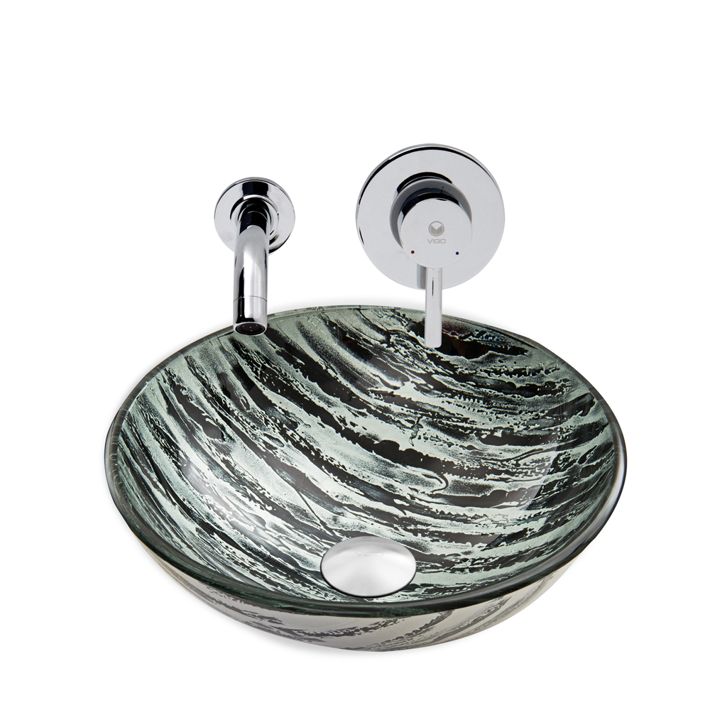 The VIGO Rising Moon Glass Vessel Sink and Olus Faucet Set in Chrome Finish is bold and beautiful, sure to wake up the night.