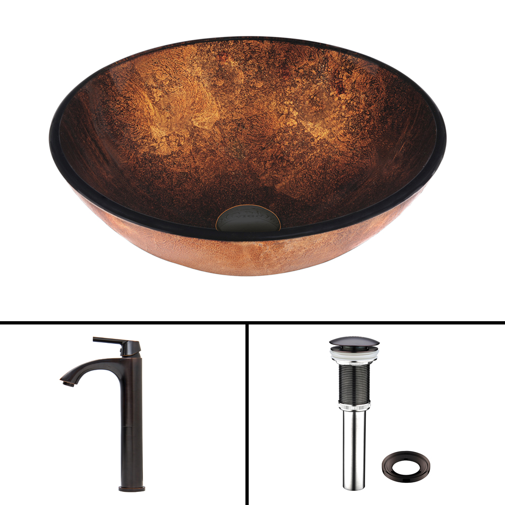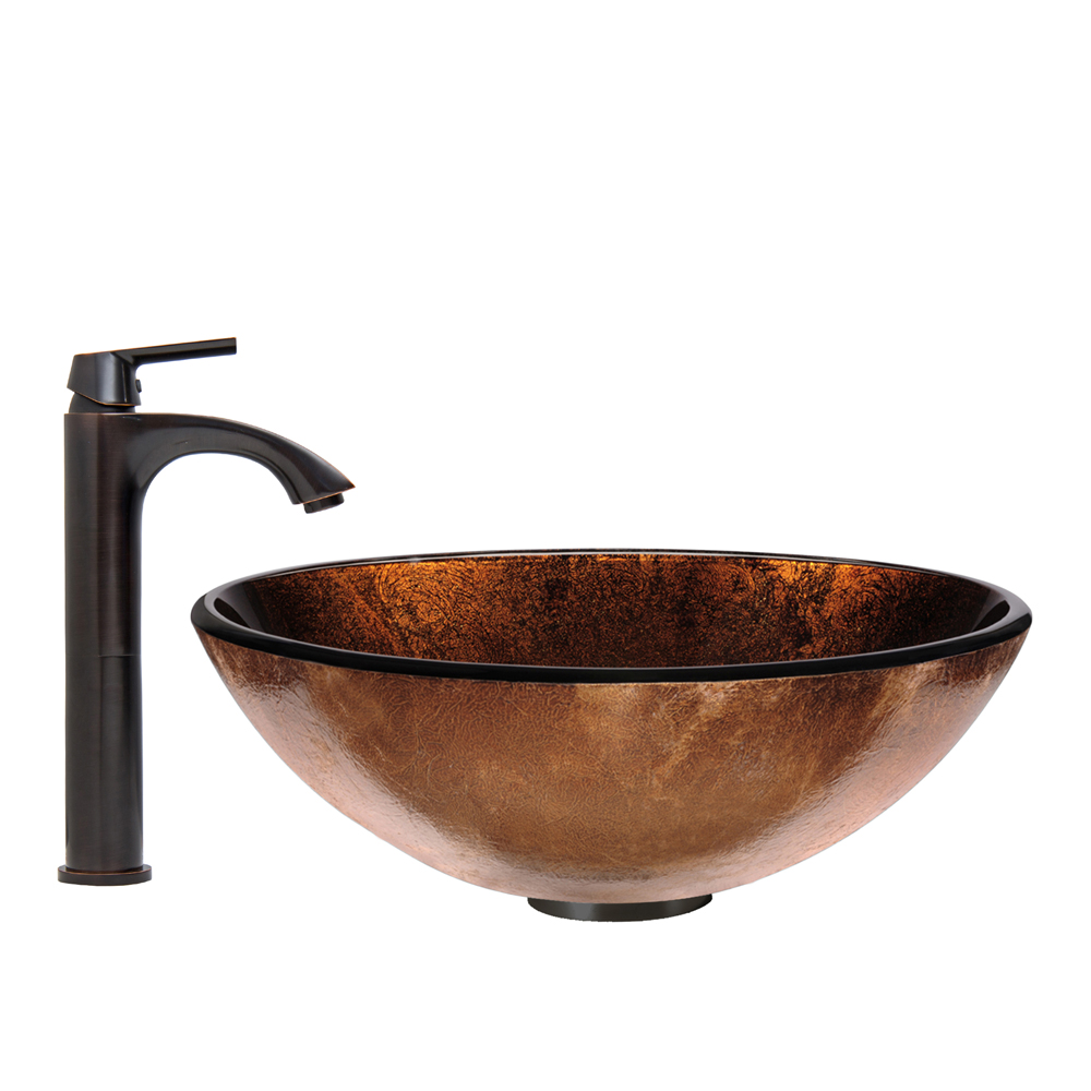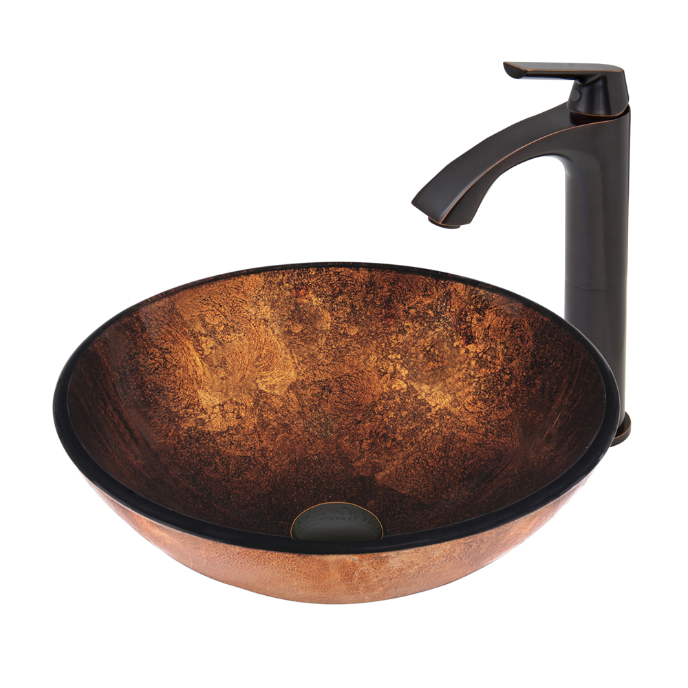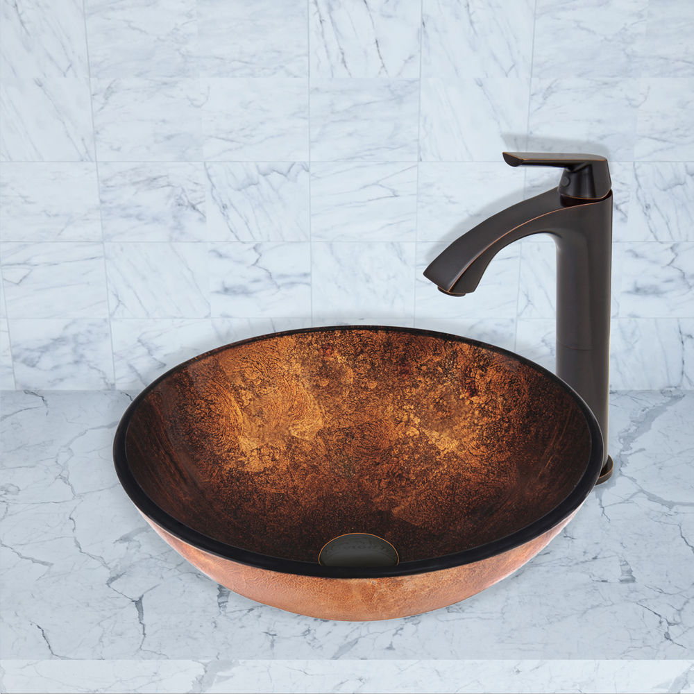 The VIGO Russet Glass Vessel Sink and Linus Faucet Set in Antique Rubbed Bronze Finish is exactly what your new bathroom is missing.