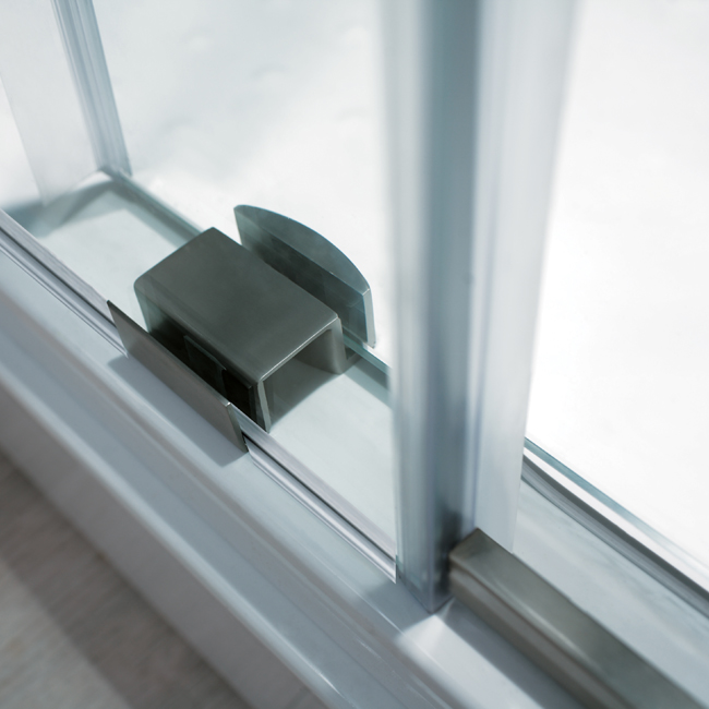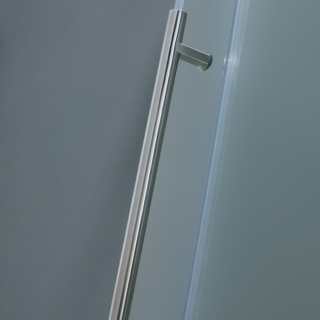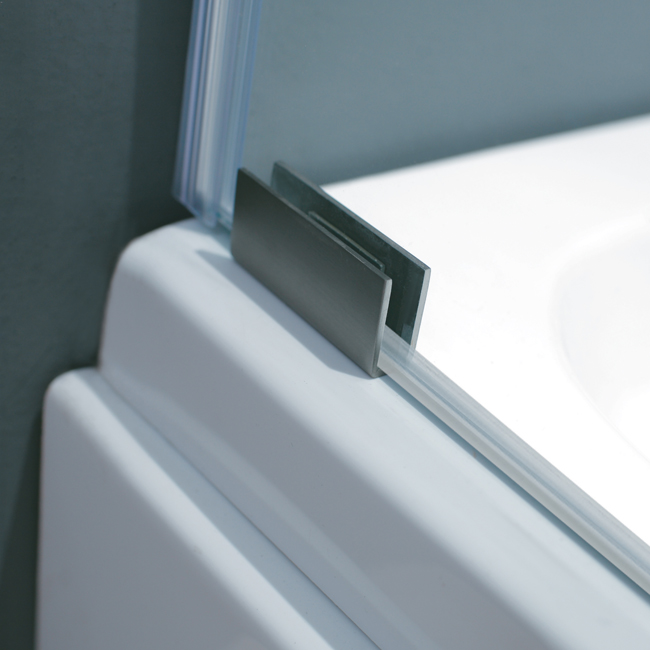 Full-length clear seals make the shower waterproof where door and fixed panel overlap