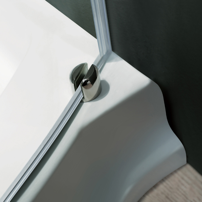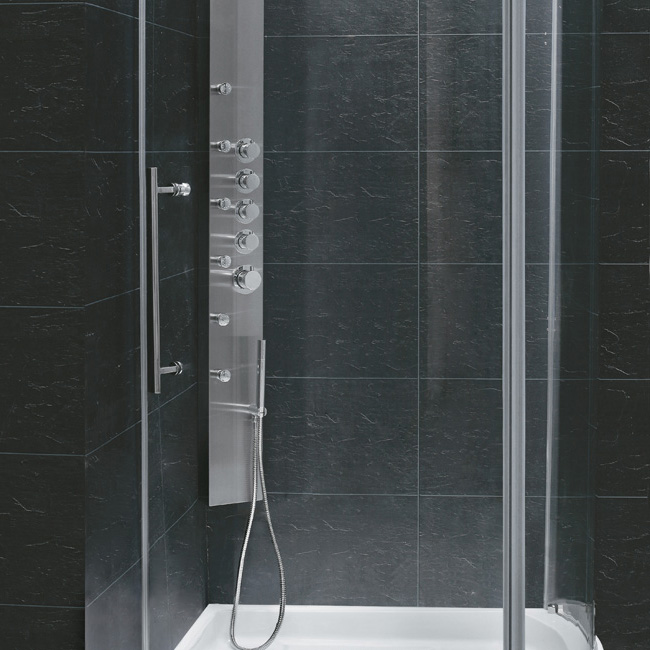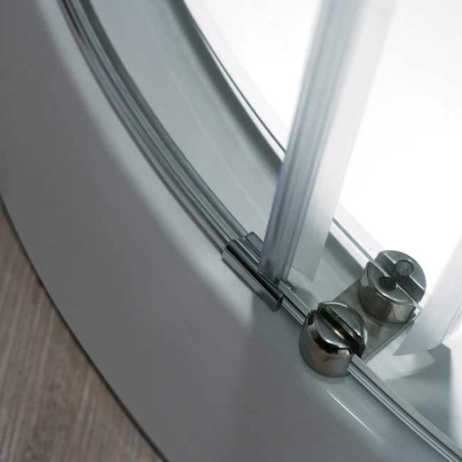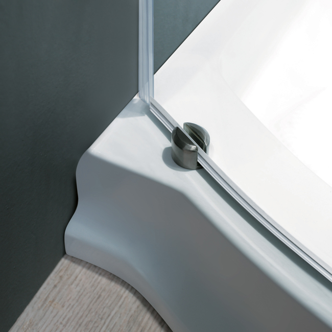 Full-length clear seals make the shower waterproof where door and side panel overlap