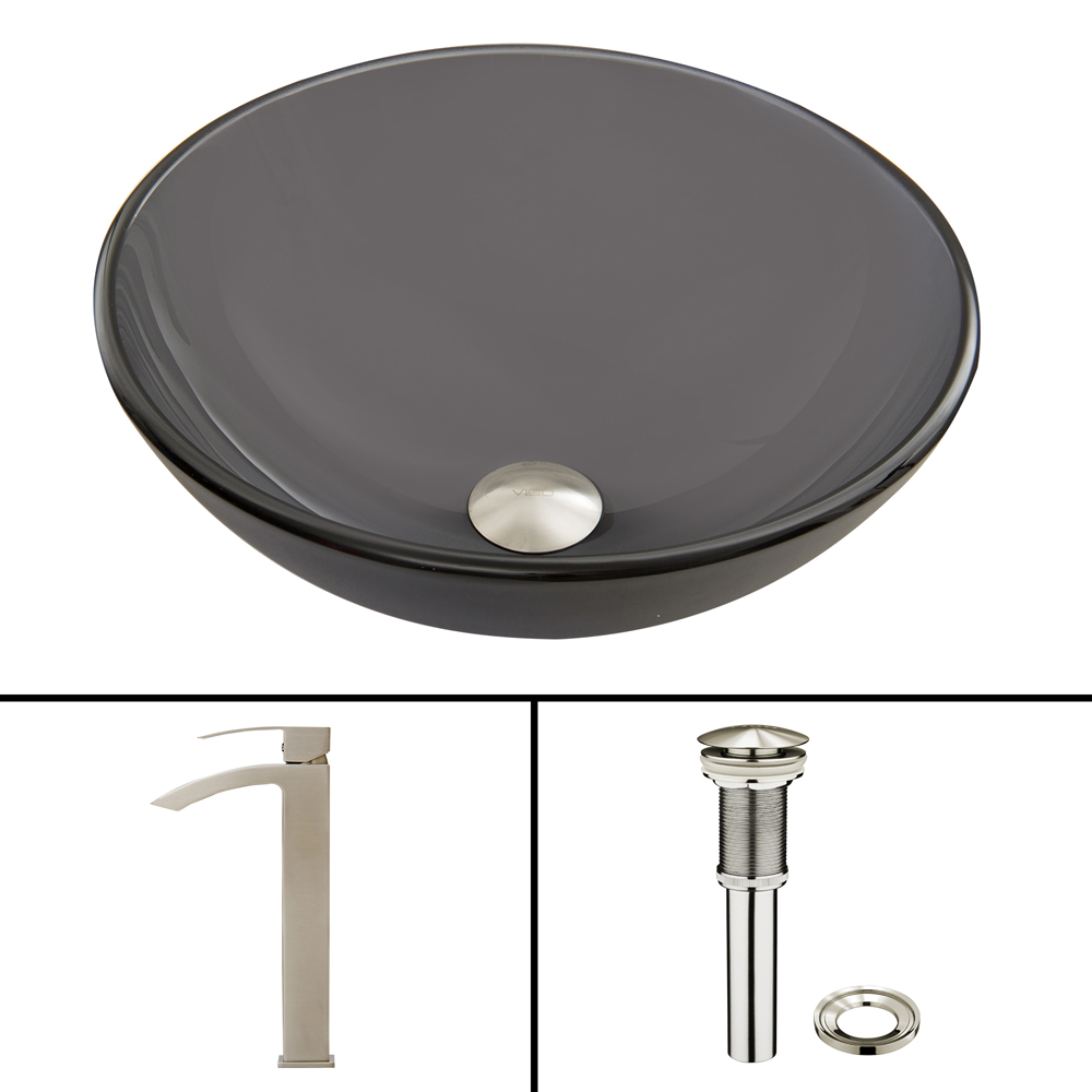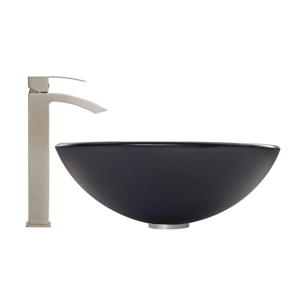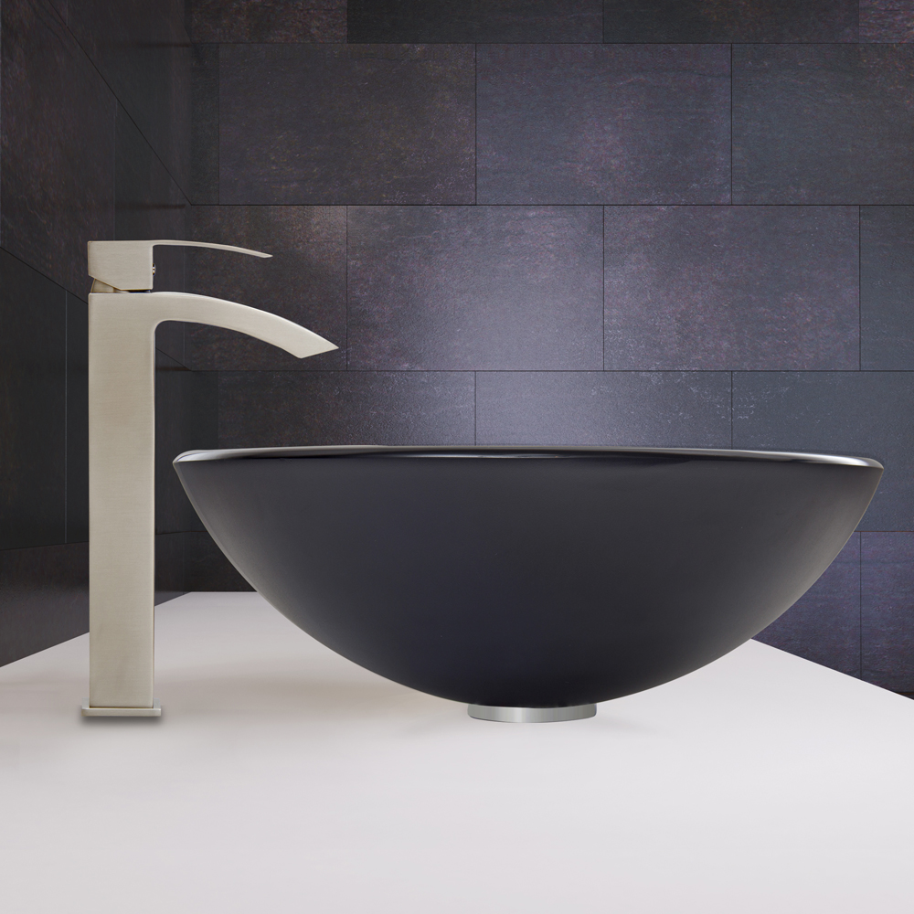 The VIGO Sheer Black Frosted Glass Vessel Sink and Duris Faucet Set in Brushed Nickel Finish will transform your bathroom into a space of modern elegance.