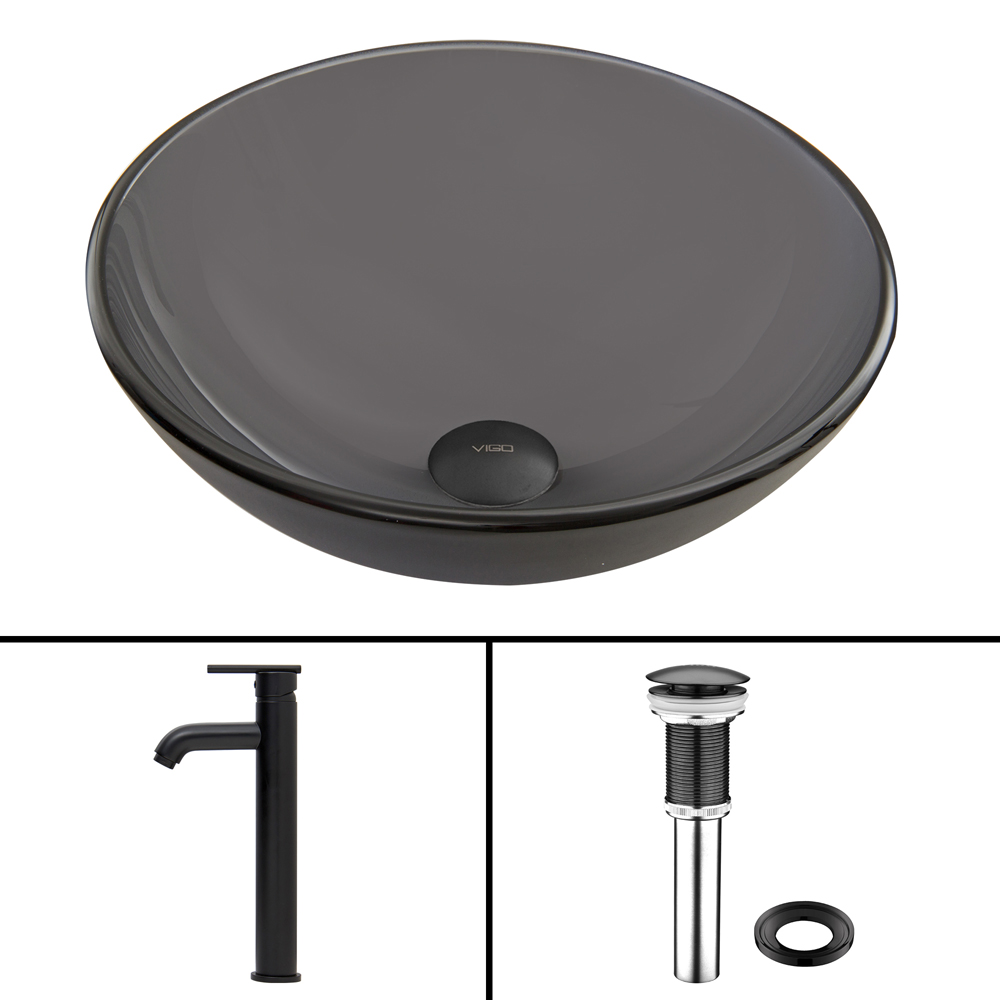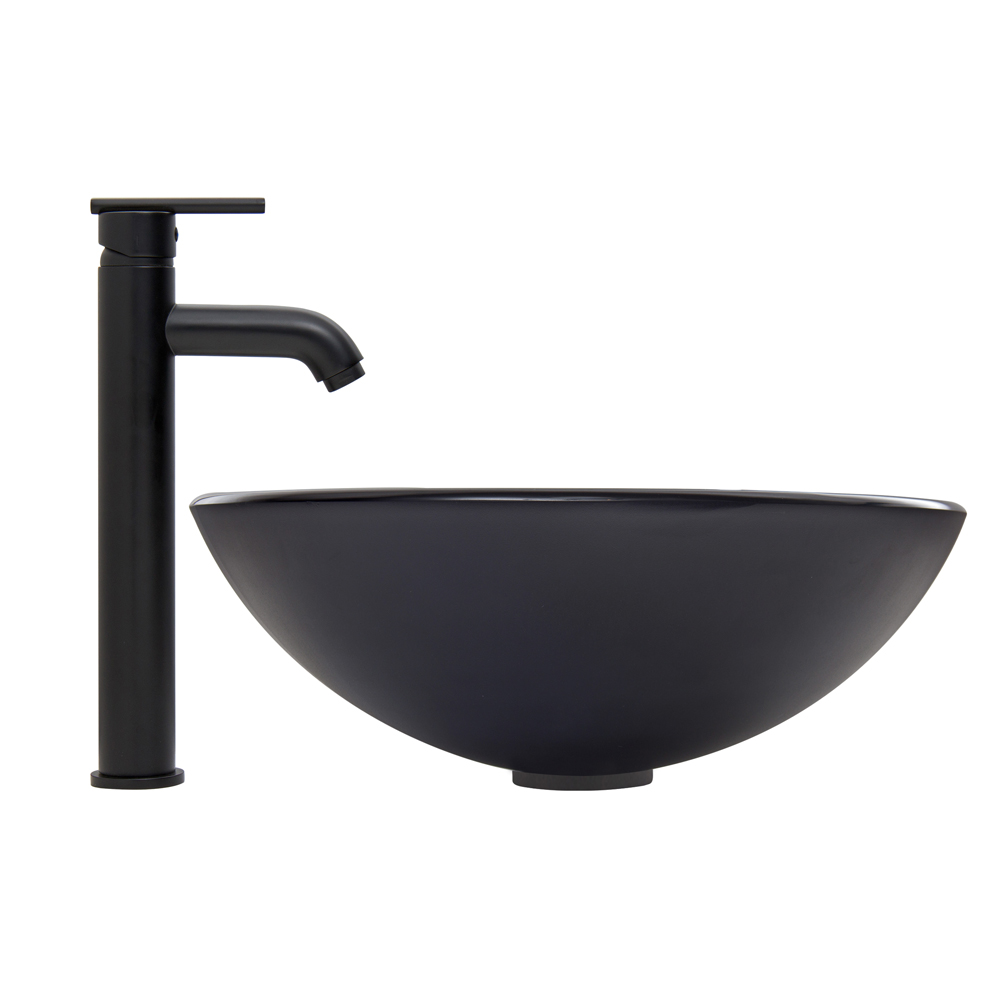 The VIGO Sheer Black Frosted Glass Vessel Sink and Seville Faucet Set in Matte Black Finish will transform your bathroom into a space of modern elegance.
