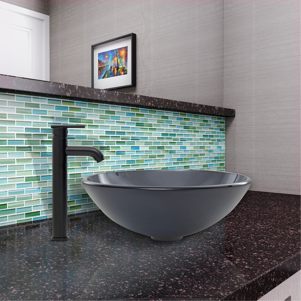 The VG07062 Sheer Black Frosted glass vessel bowl features a frosted black glass, exuding class and style.