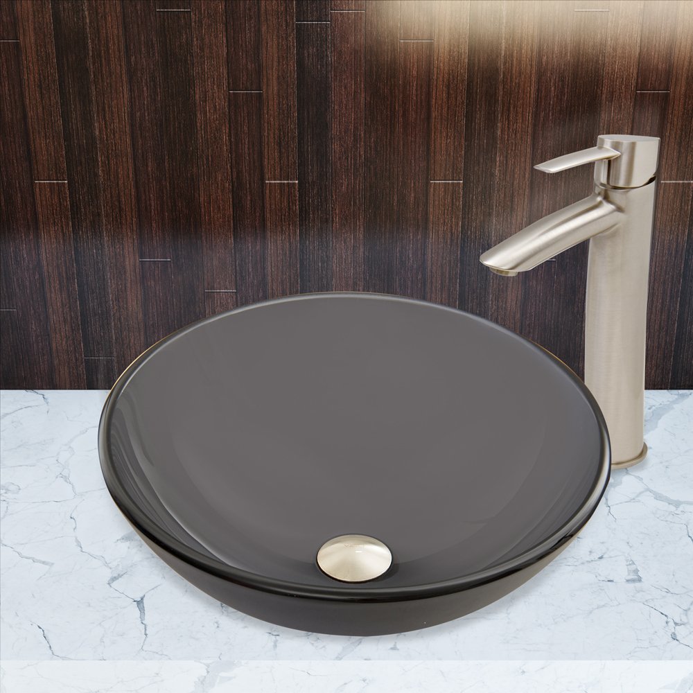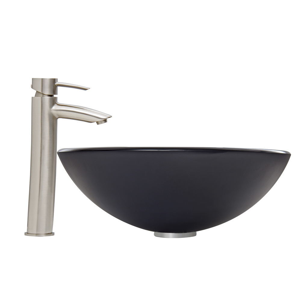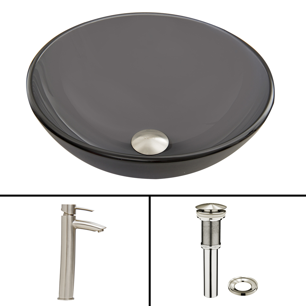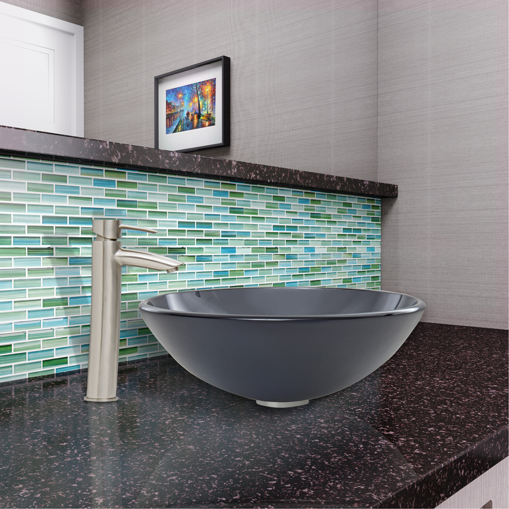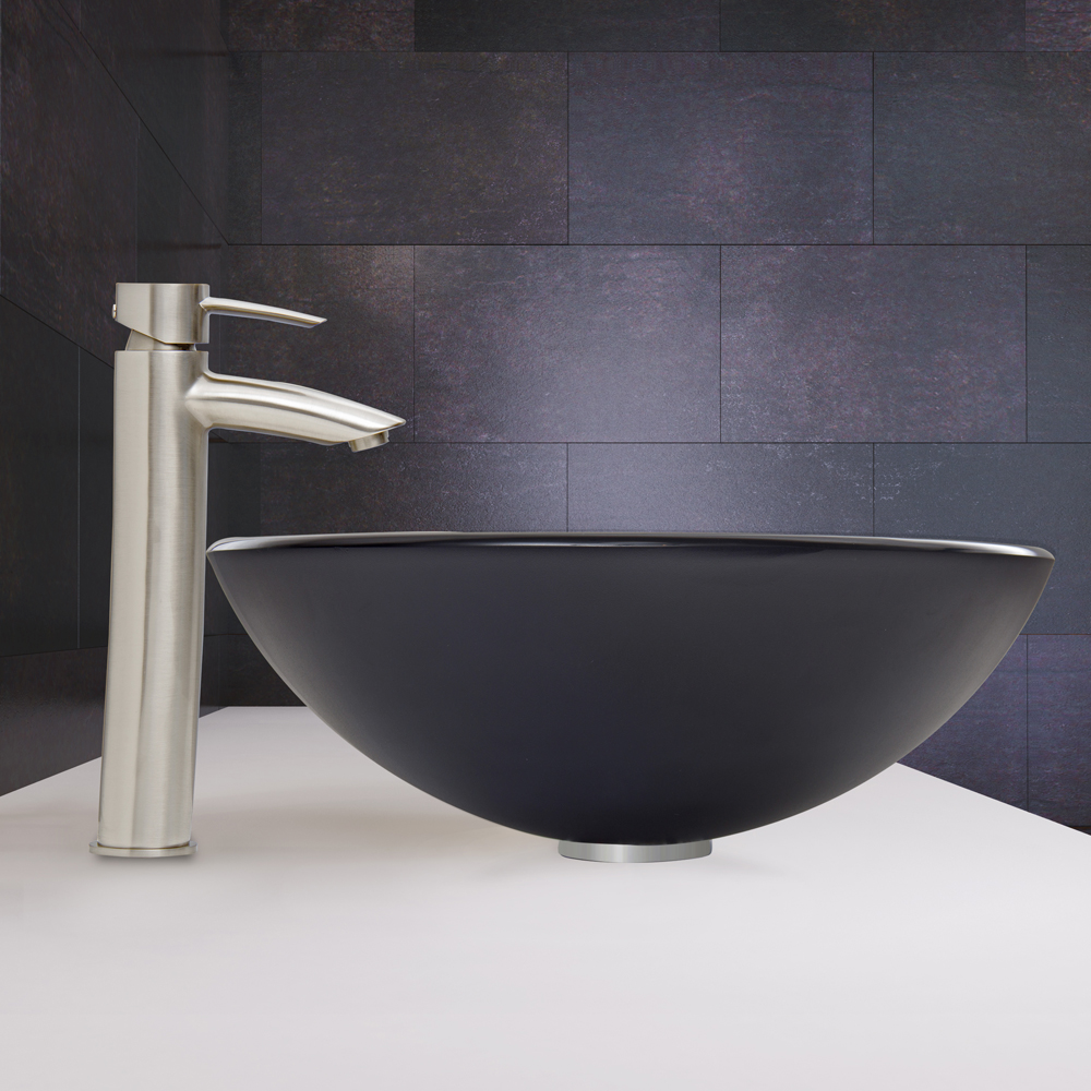 The VIGO Sheer Black Frosted Glass Vessel Sink and Shadow Faucet Set in Brushed Nickel Finish will transform your bathroom into a space of modern elegance.