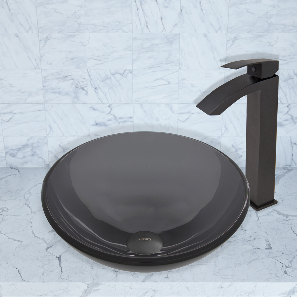 The VIGO Sheer Black Glass Vessel Sink and Duris Faucet Set in Matte Black Finish bring your bathroom the modern style and edgy design you’ve been looking for.