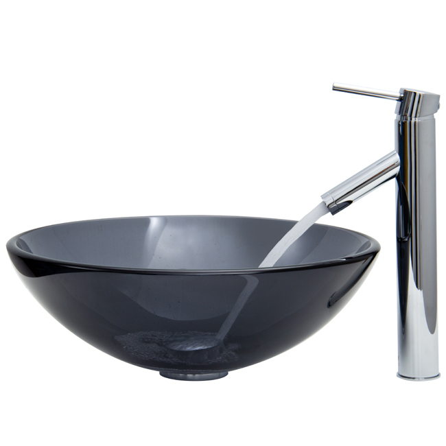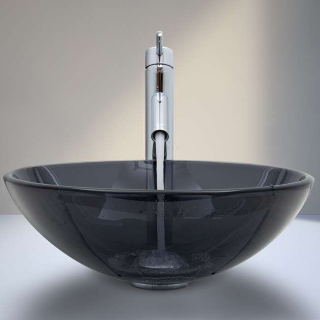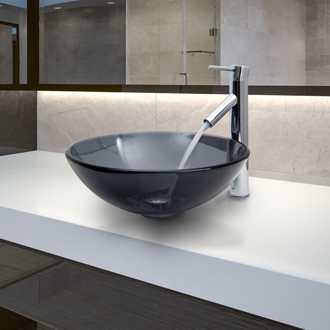 The VIGO Sheer Black glass vessel sink with