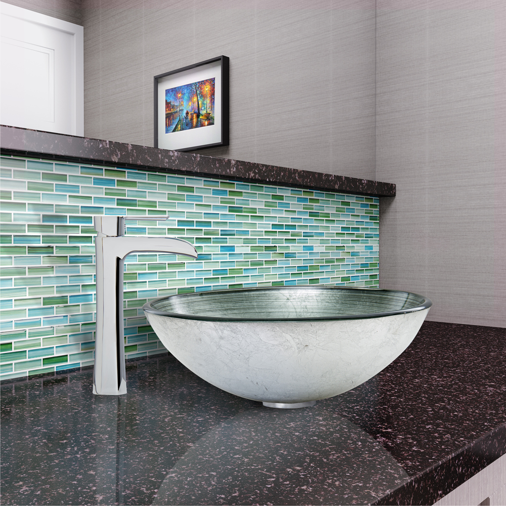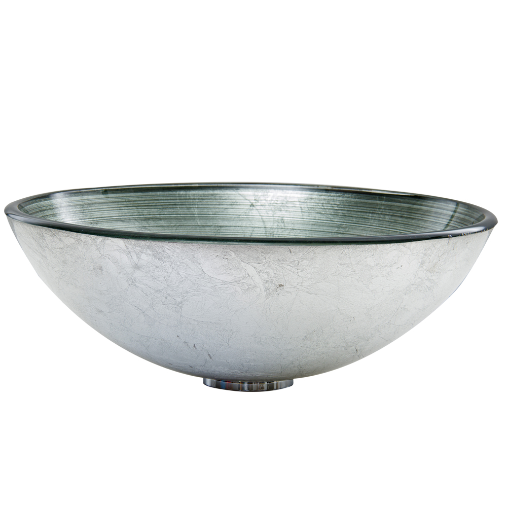 The VG07053 Simply Silver glass vessel bowl features the look of hand spun metallic, bringing your bathroom that extra sparkle.