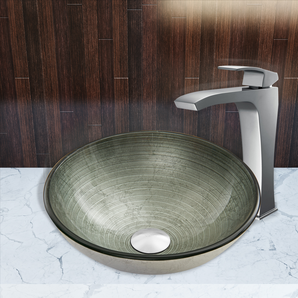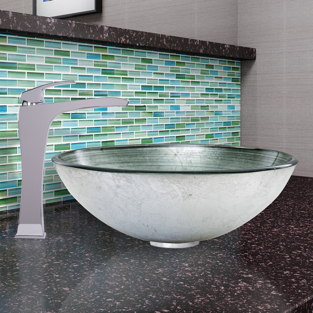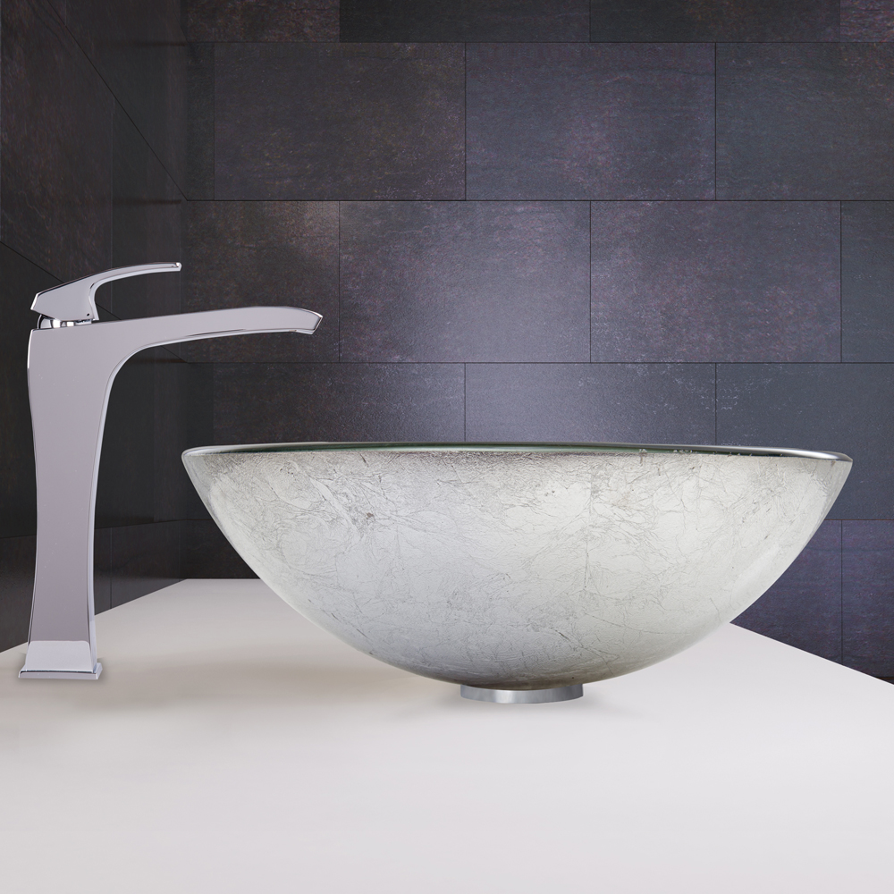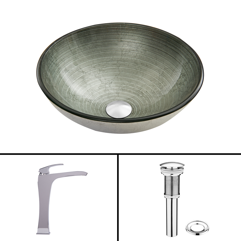 The VIGO Simply Silver Glass Vessel Sink and Blackstonian Faucet Set in Chrome Finish will simply brighten up your bathroom with minimal effort.