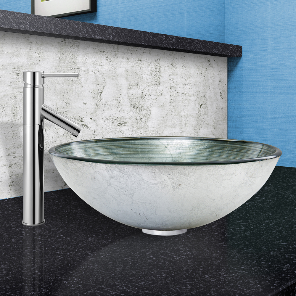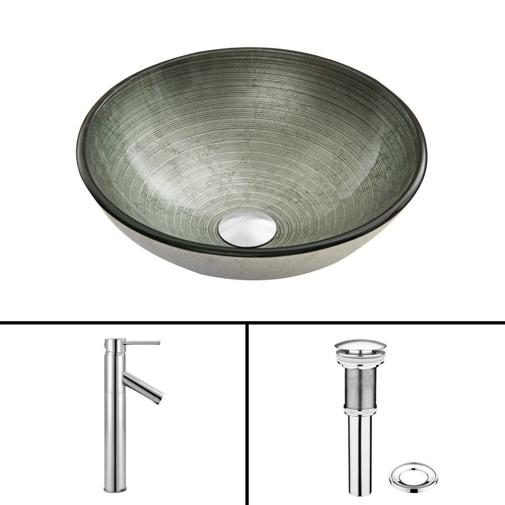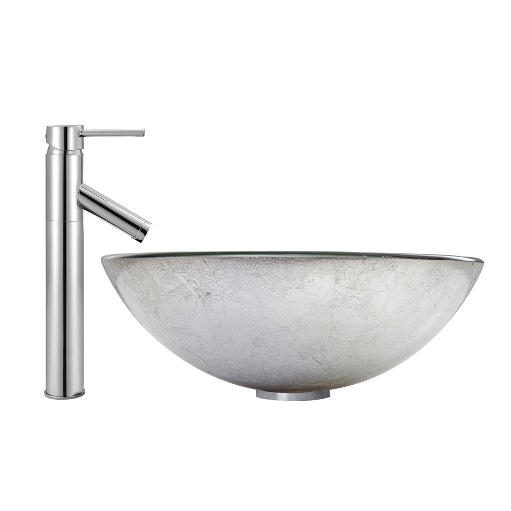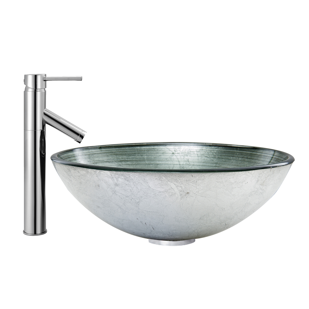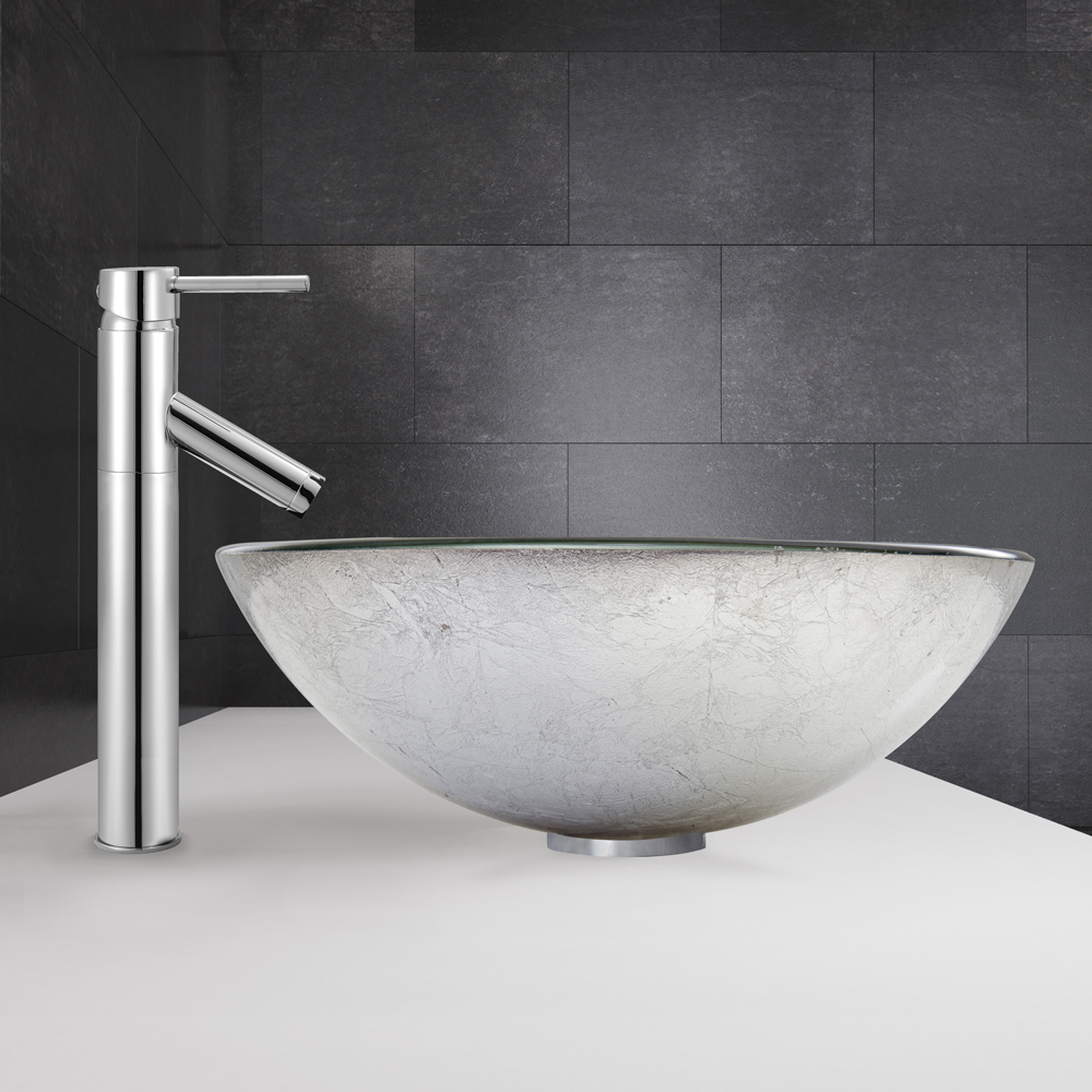 The VIGO Simply Silver Glass Vessel Sink and Dior Faucet Set in Chrome Finish will simply brighten up your bathroom with minimal effort.