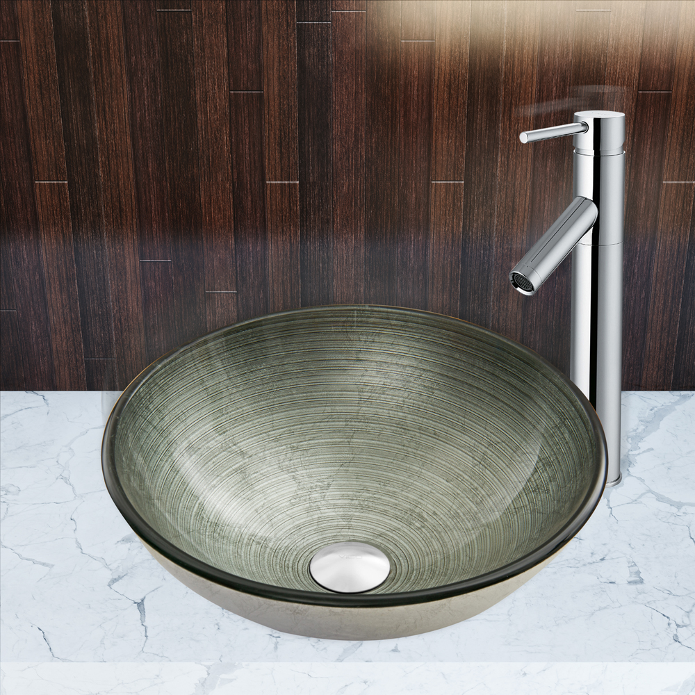 The VG07053 Simply Silver glass vessel bowl features the look of hand spun metallic, bringing your bathroom that extra sparkle.