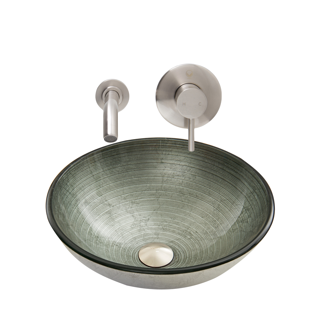 The VG07053 Simply Silver glass vessel bowl features the look of hand spun metallic, bringing your bathroom that extra sparkle.