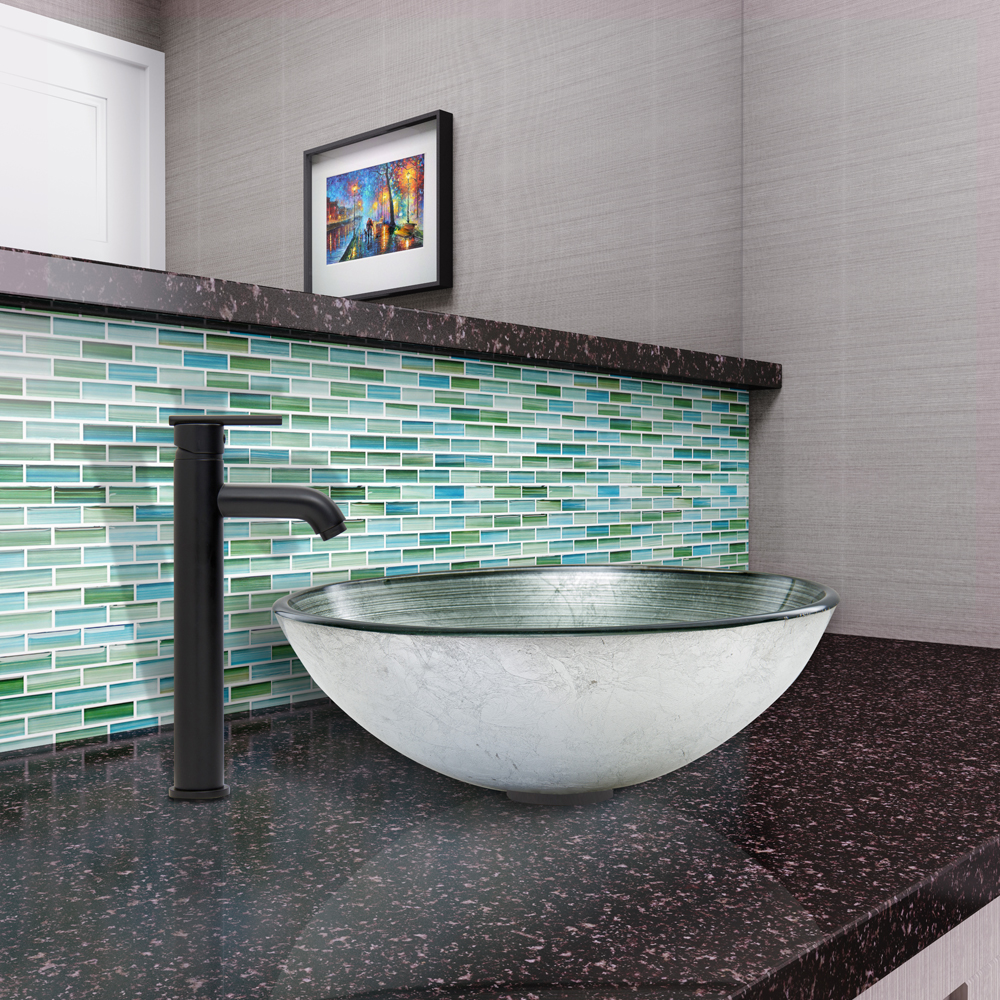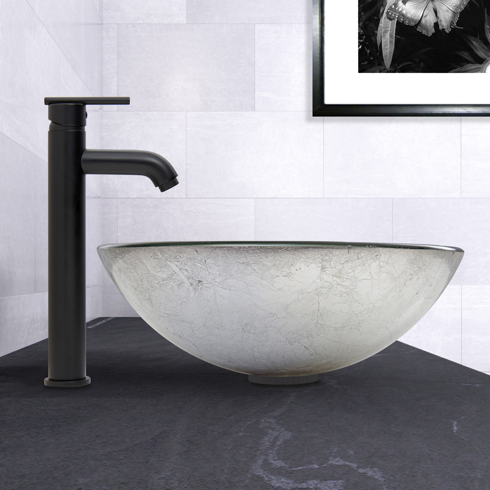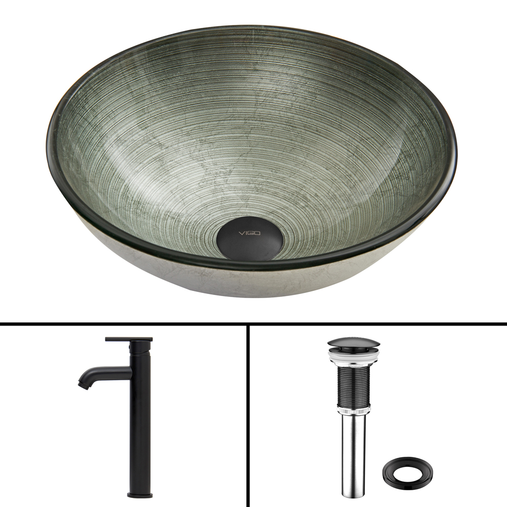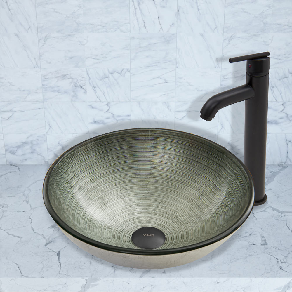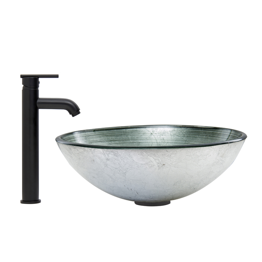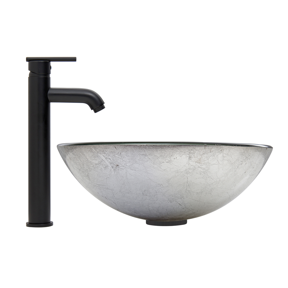The VIGO Simply Silver Glass Vessel Sink and Seville Faucet Set in Matte Black Finish will simply brighten up your bathroom with minimal effort.