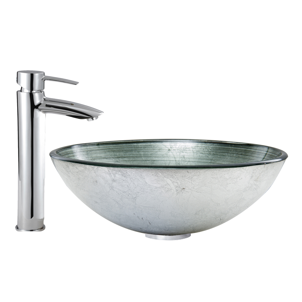 The VG07053 Simply Silver glass vessel bowl features the look of hand spun metallic, bringing your bathroom that extra sparkle.