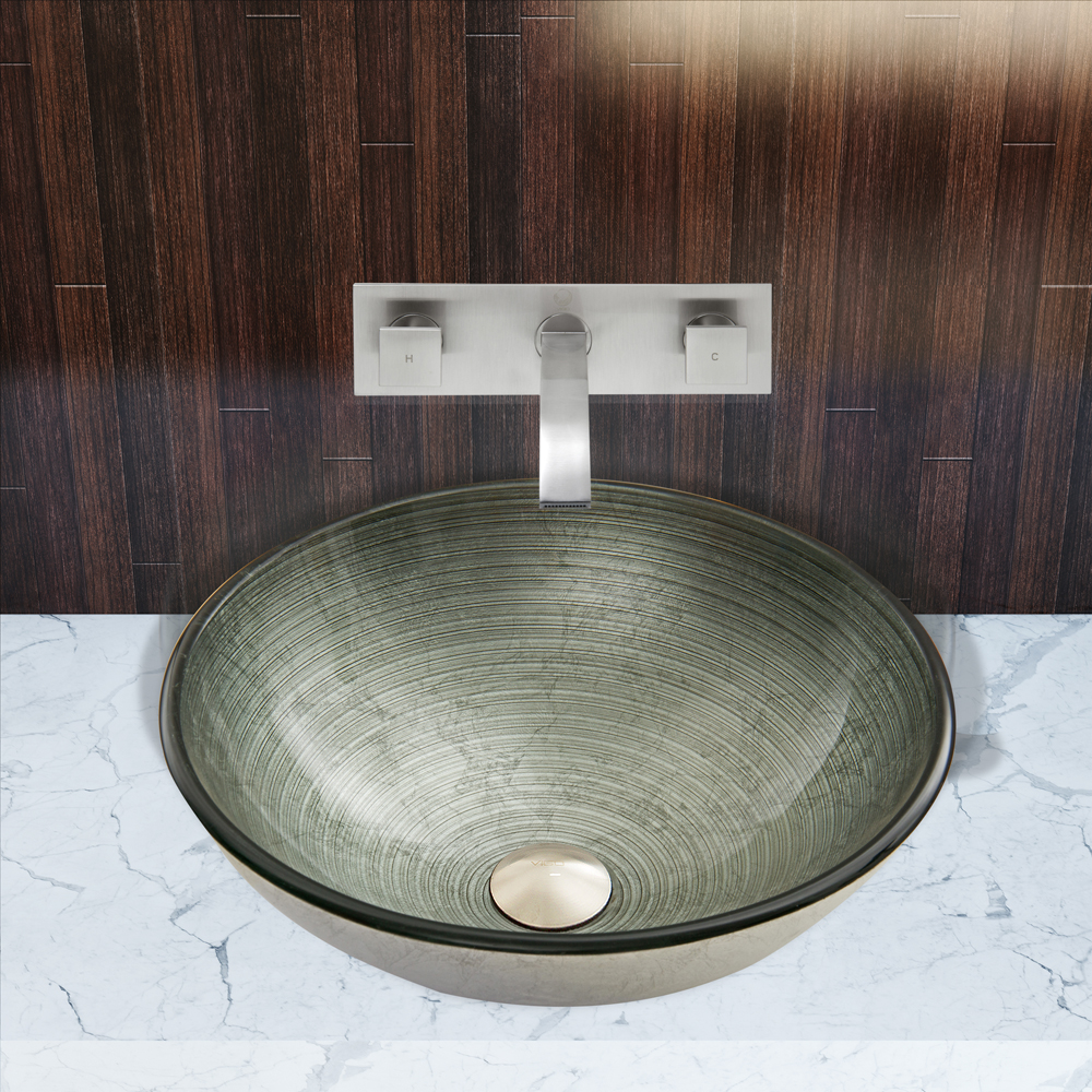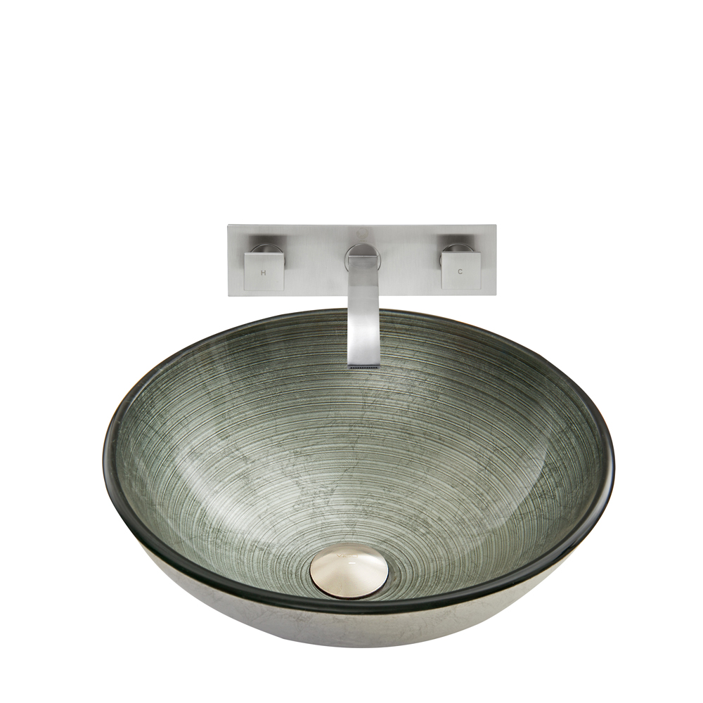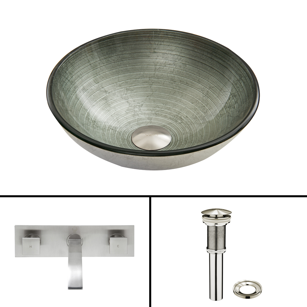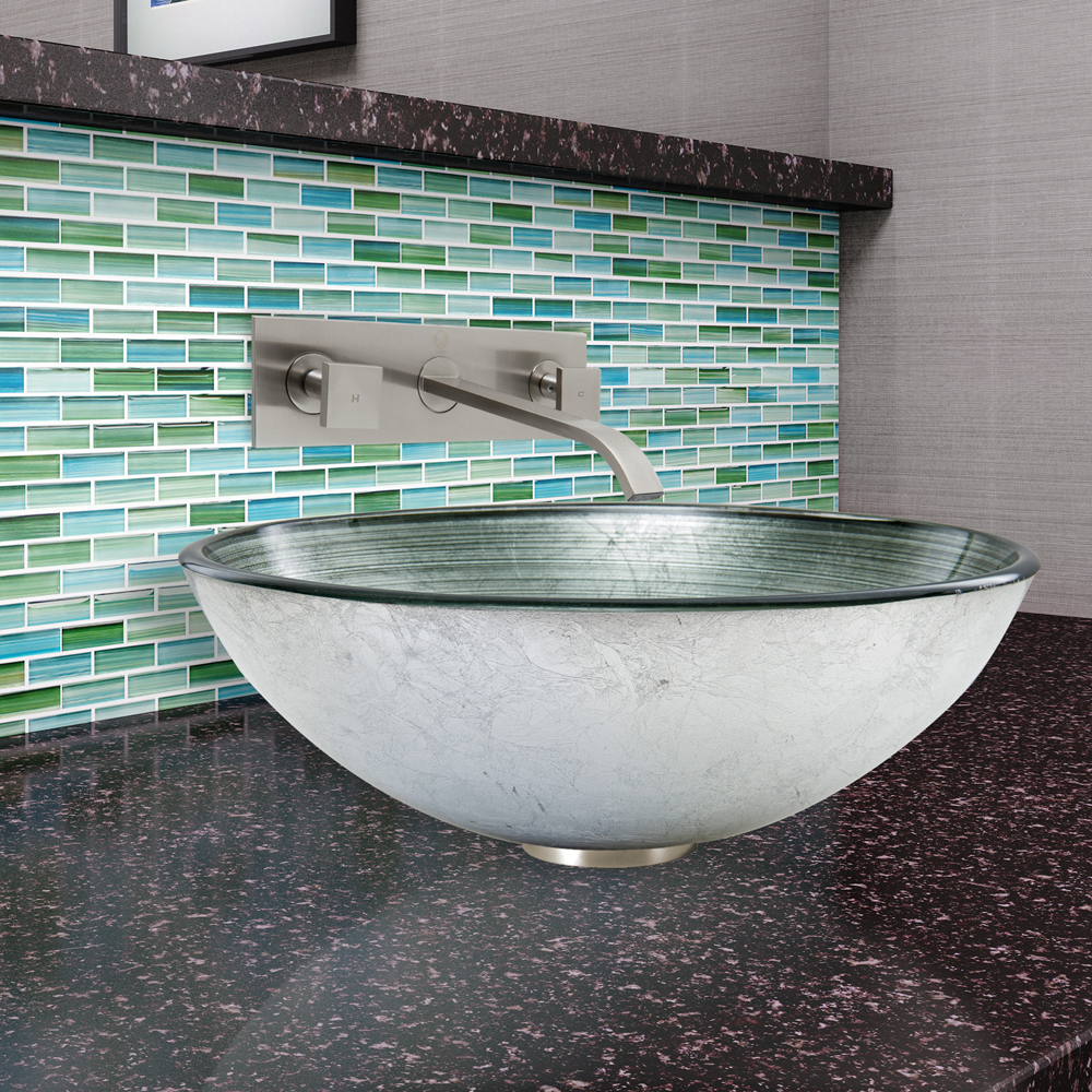 The VIGO Simply Silver Glass Vessel Sink and Titus Wall mount Faucet Set in Brushed Nickel Finish will simply brighten up your bathroom with minimal effort.