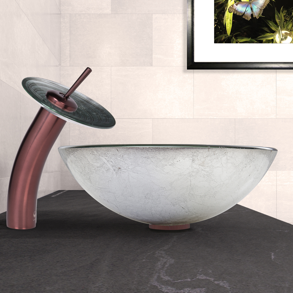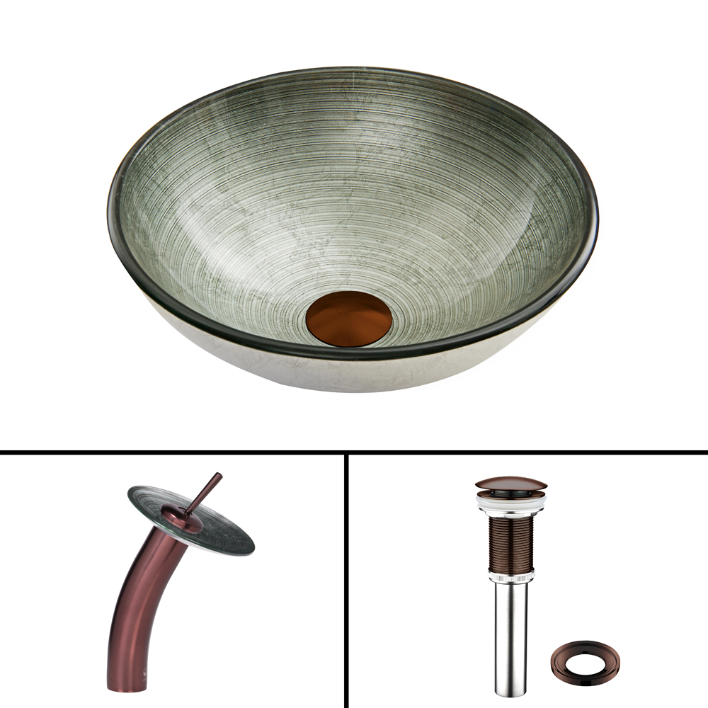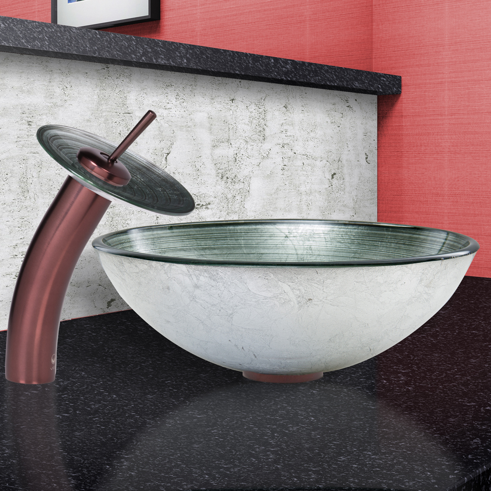 The VIGO Simply Silver Glass Vessel Sink and Waterfall Faucet Set in Oil Rubbed Bronze Finish will simply brighten up your bathroom with minimal effort.
