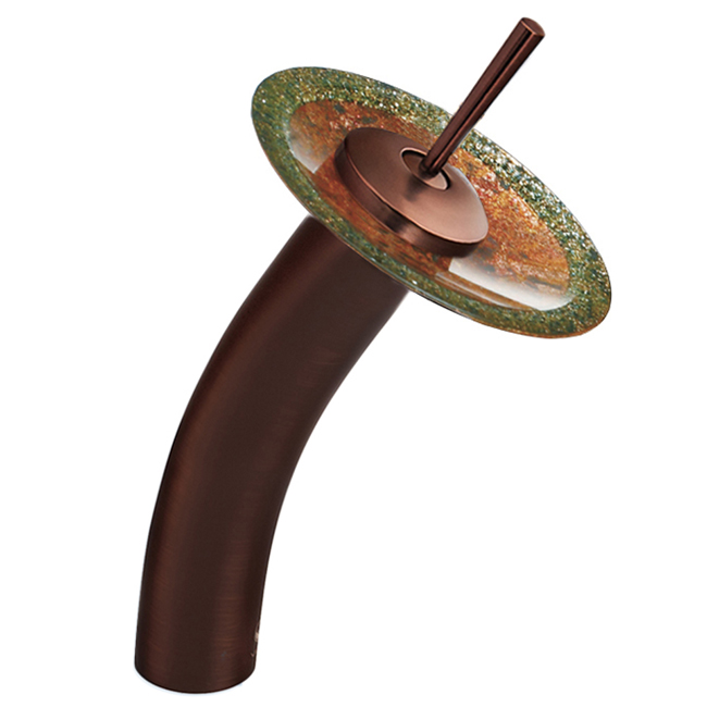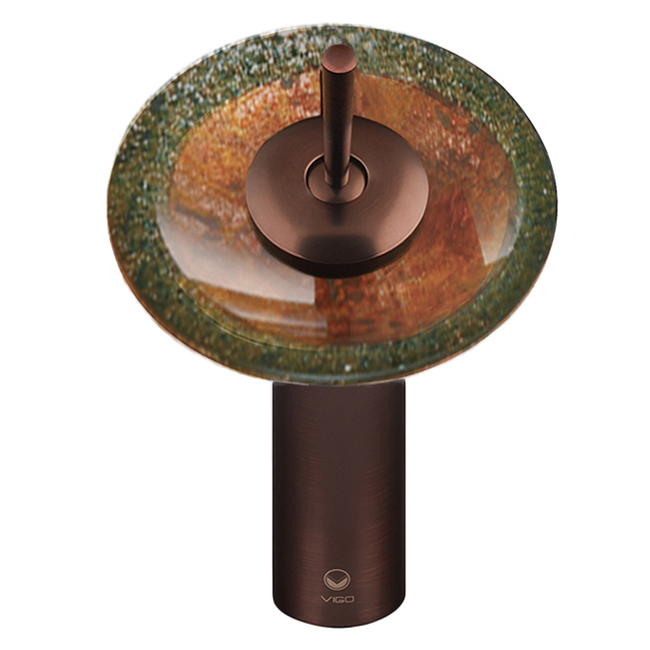 The VIGO Single Lever Waterfall Faucet in Oil Rubbed Bronze features a Janus glass disc