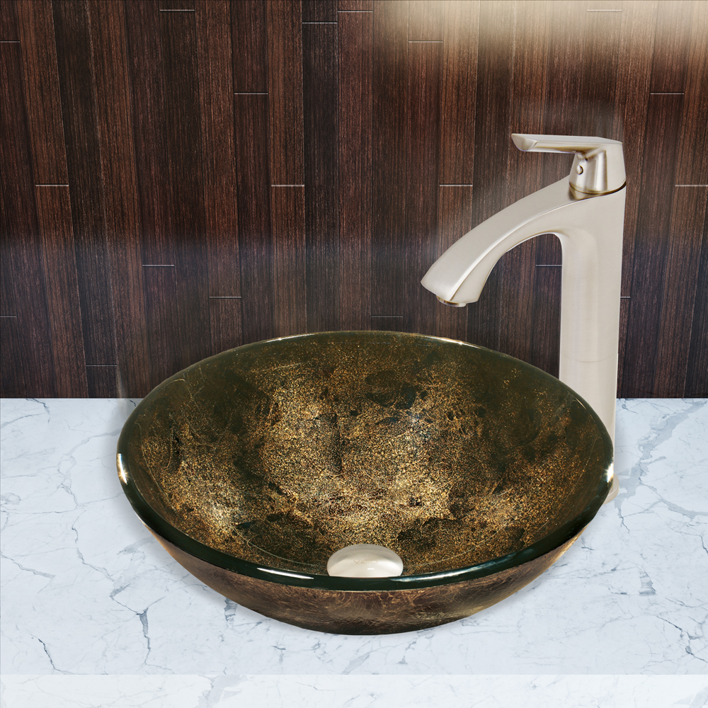 The VG07604 Sintra glass vessel bowl features gorgeous gold and black colors fused together, making it glow fiercely.