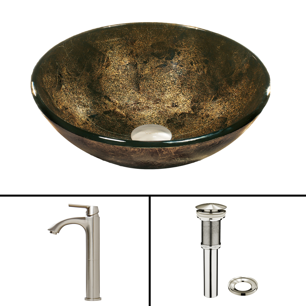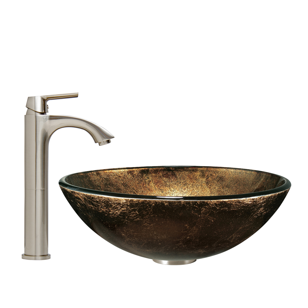 The VIGO Sintra Glass Vessel Sink and Linus Faucet Set in Brushed Nickel Finish will be sure to impress and make your bathroom stylish and luxurious.