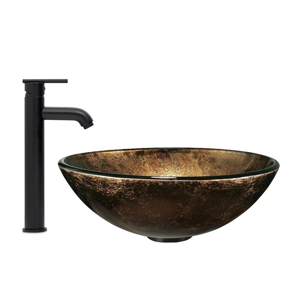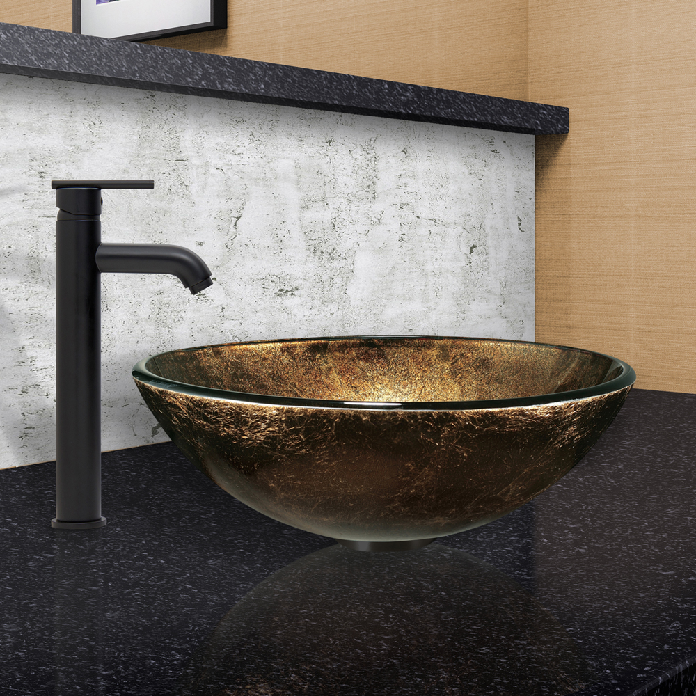 The VG07604 Sintra glass vessel bowl features gorgeous gold and black colors fused together, making it glow fiercely.