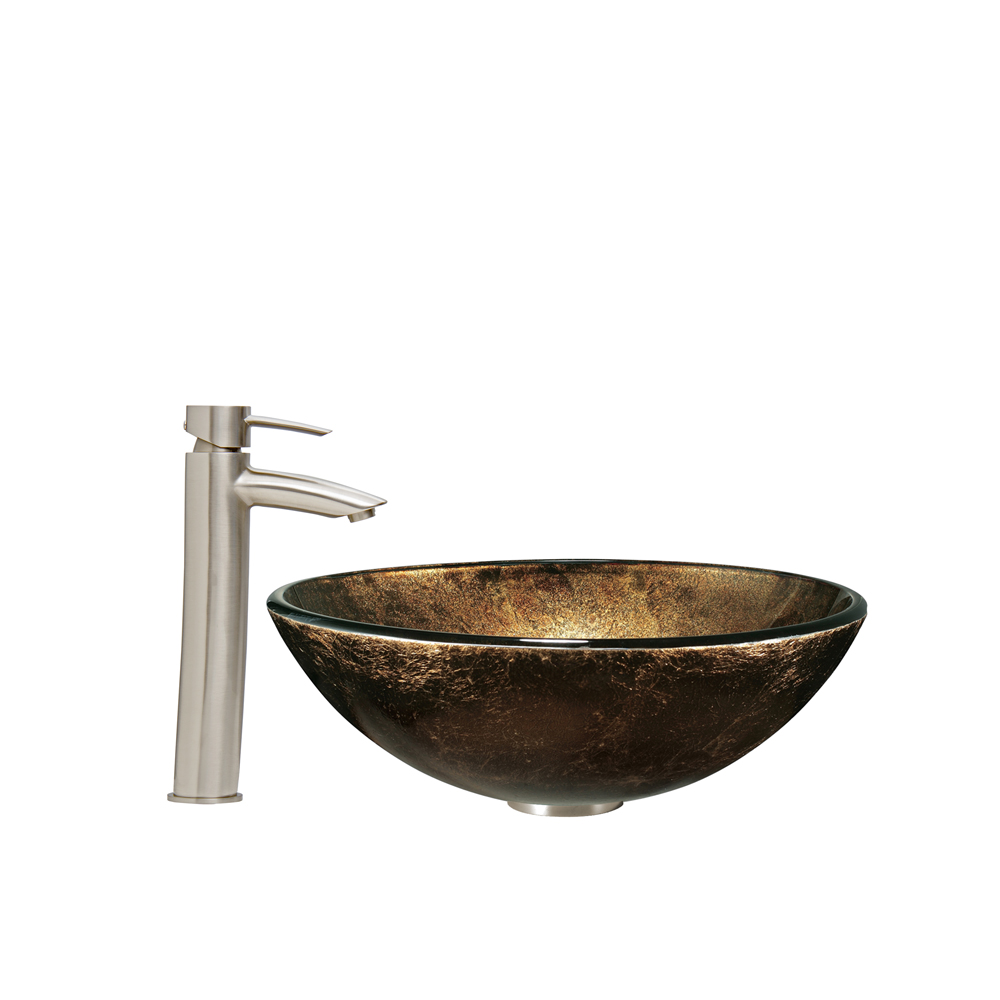 The VIGO Sintra Glass Vessel Sink and Shadow Faucet Set in Brushed Nickel Finish will be sure to impress and make your bathroom stylish and luxurious.