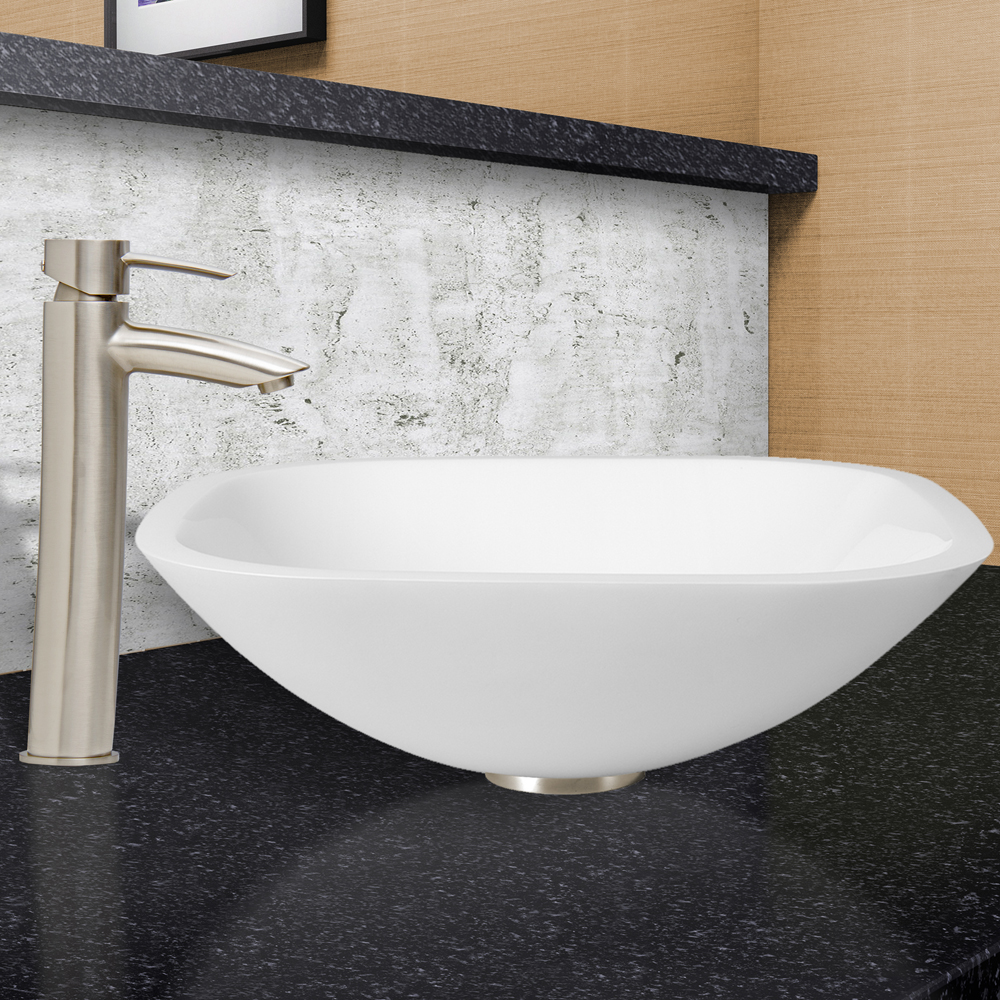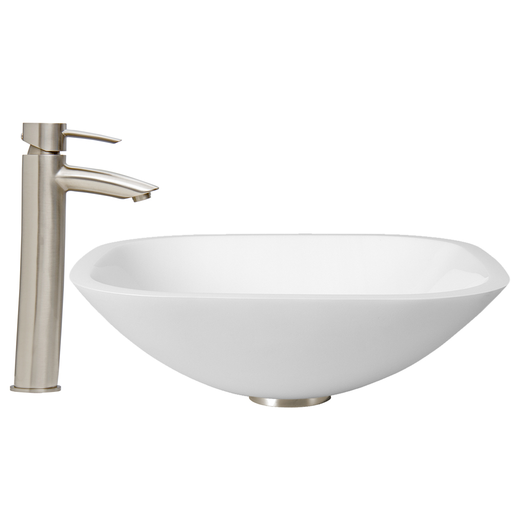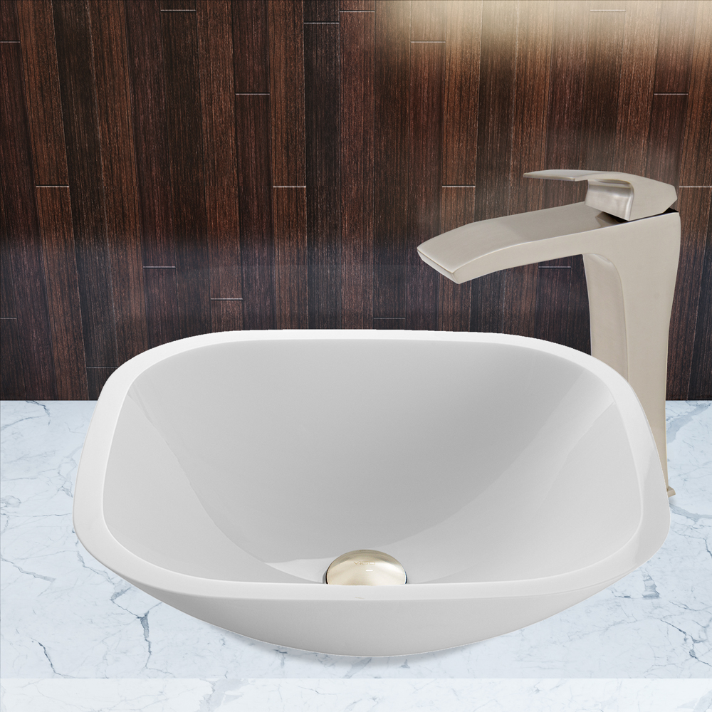 The VG07040 Square Shaped White Phoenix Stone vessel sink with sleek flat edge is flawless and combines the durability and natural aesthetics of granite, marble, ceramic and glass.