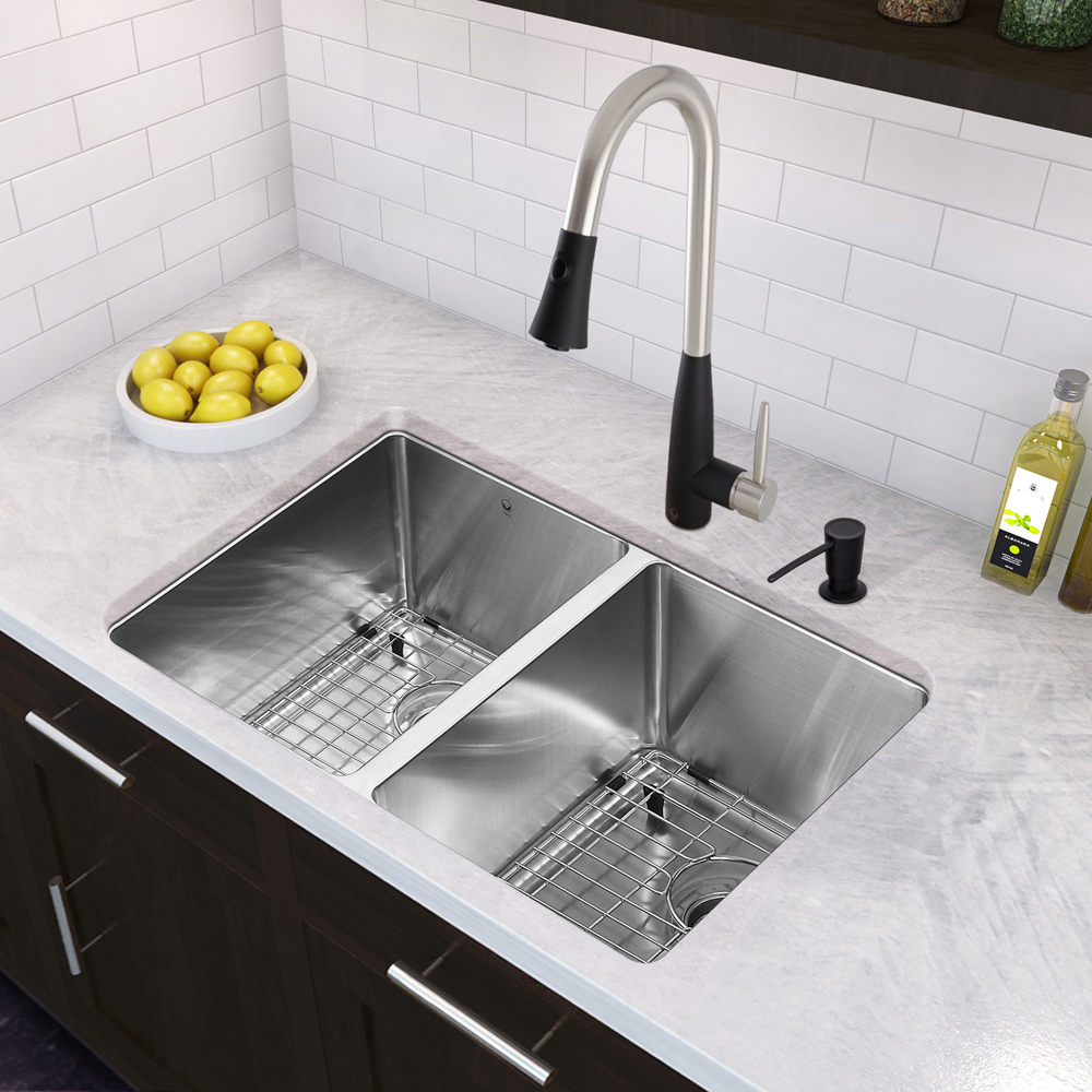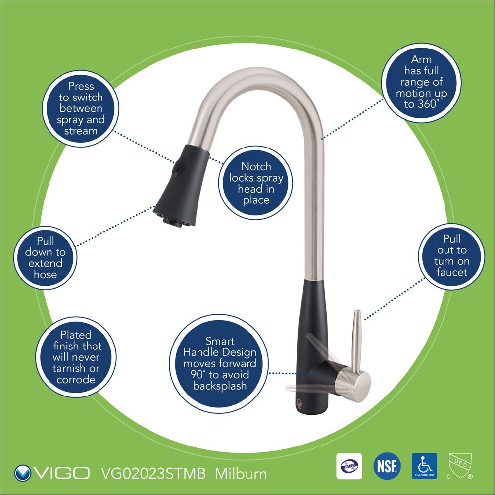 Durable and dual-functioned, this VIGO Stainless Steel pull-out spray kitchen faucet is guaranteed to last even the most severe wear and tear. It has a look that is aesthetically pleasing and will be the centerpiece of any kitchen.
