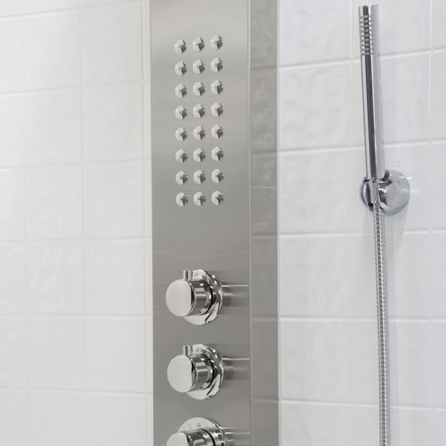 VIGO Shower Massage Panel with Rain Shower Head and Hand Held Shower.