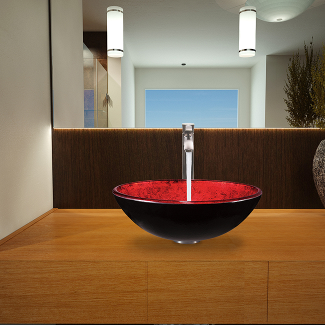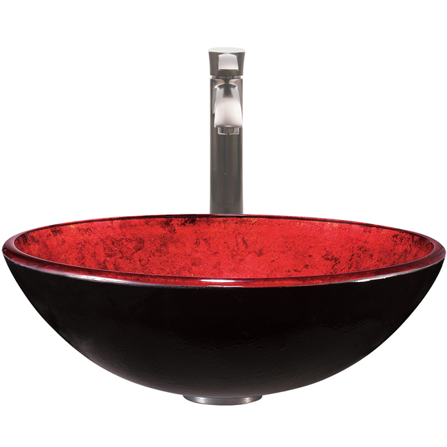 The VG07805 glass vessel bowl is classic and stylish with its crimson red color and faux design.