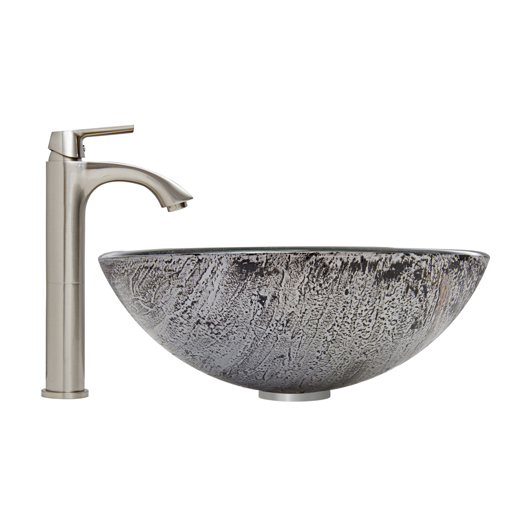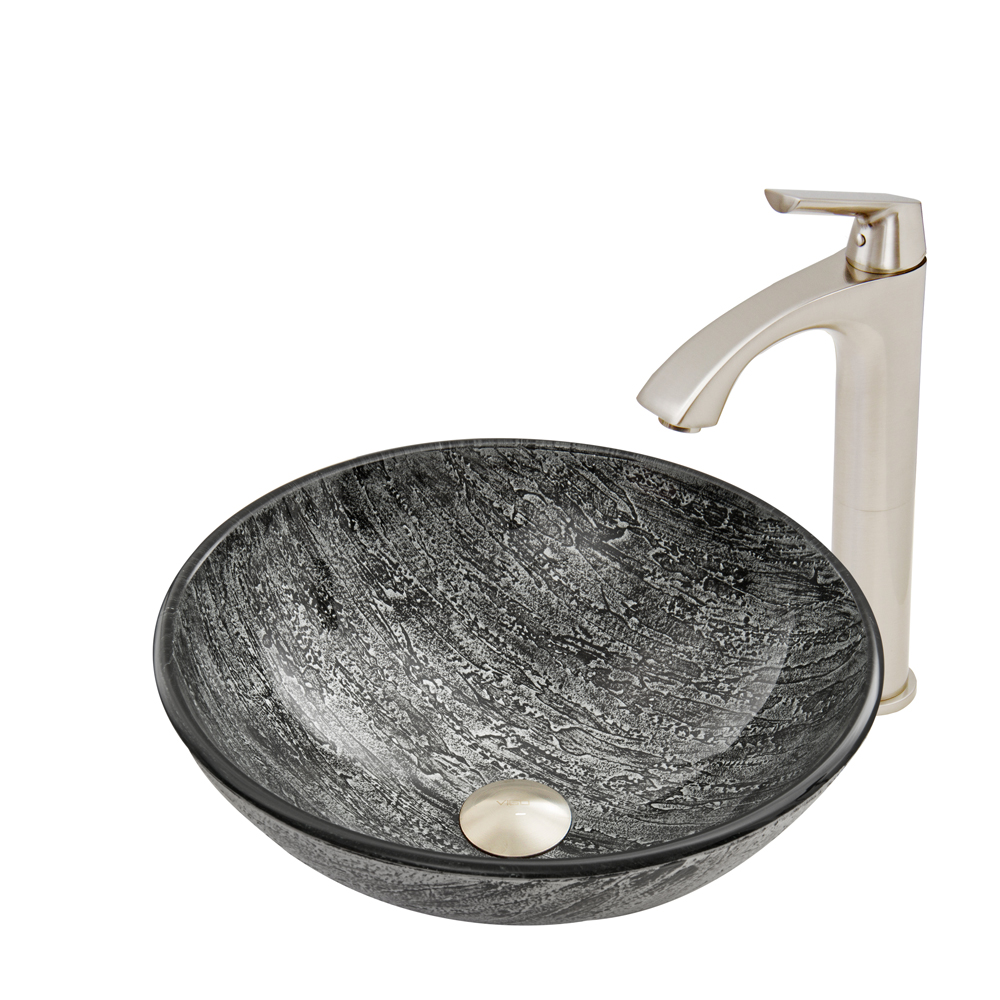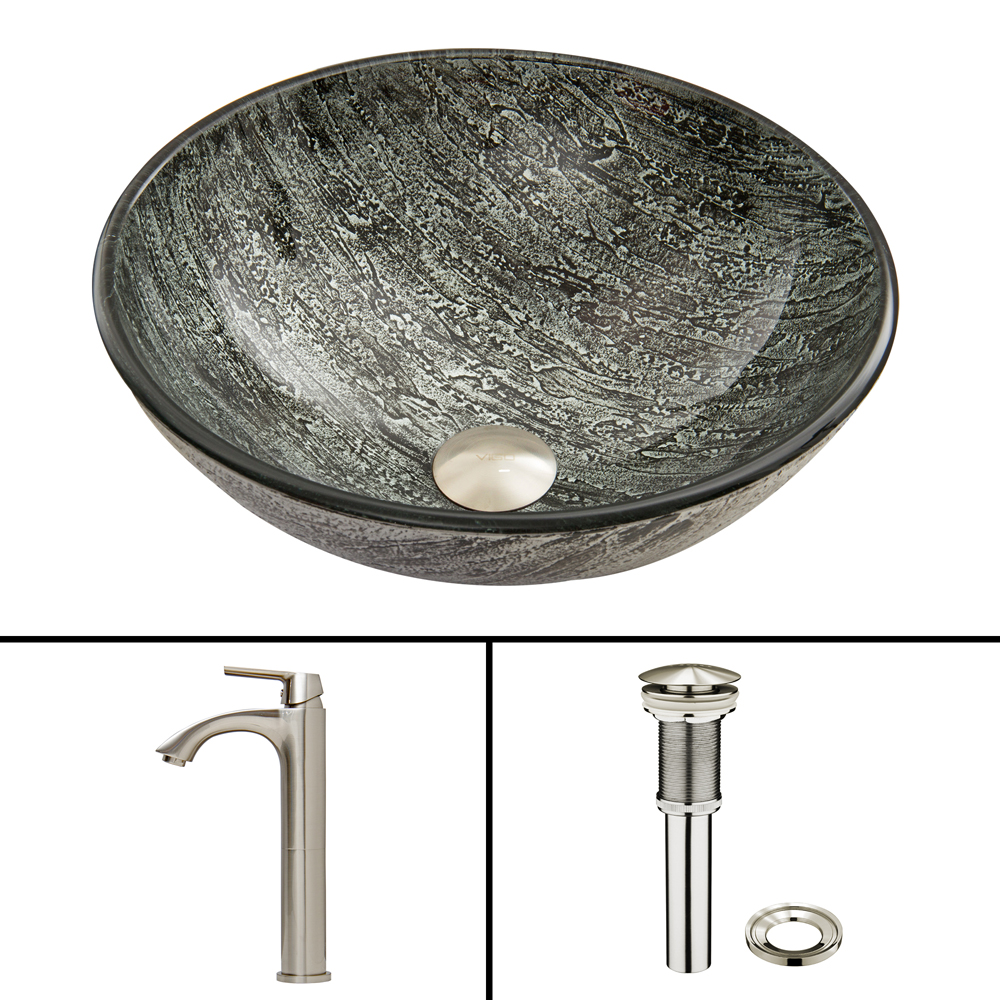 The VIGO Titanium Glass Vessel Sink and Linus Faucet Set in Brushed Nickel Finish will make your bathroom shine bright.