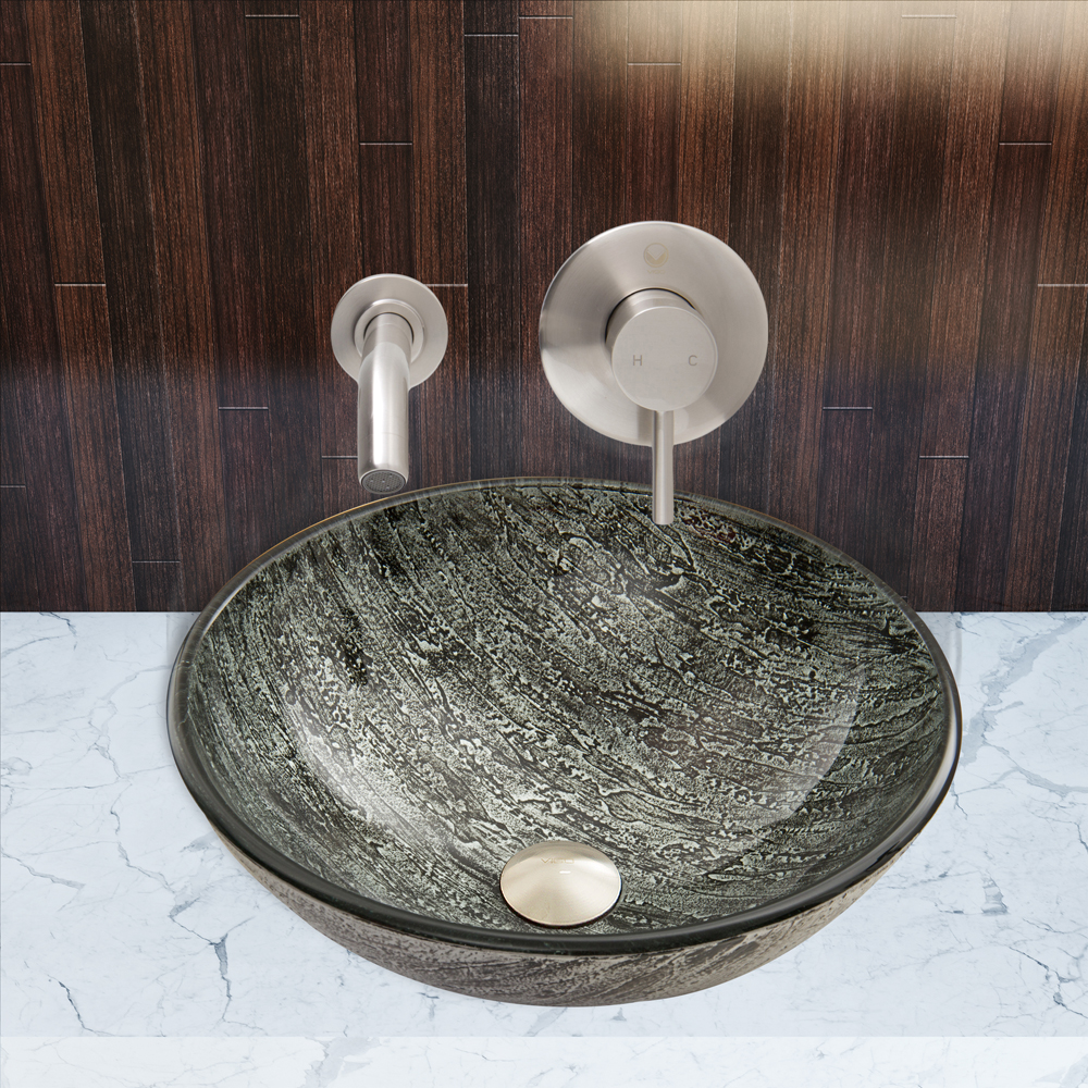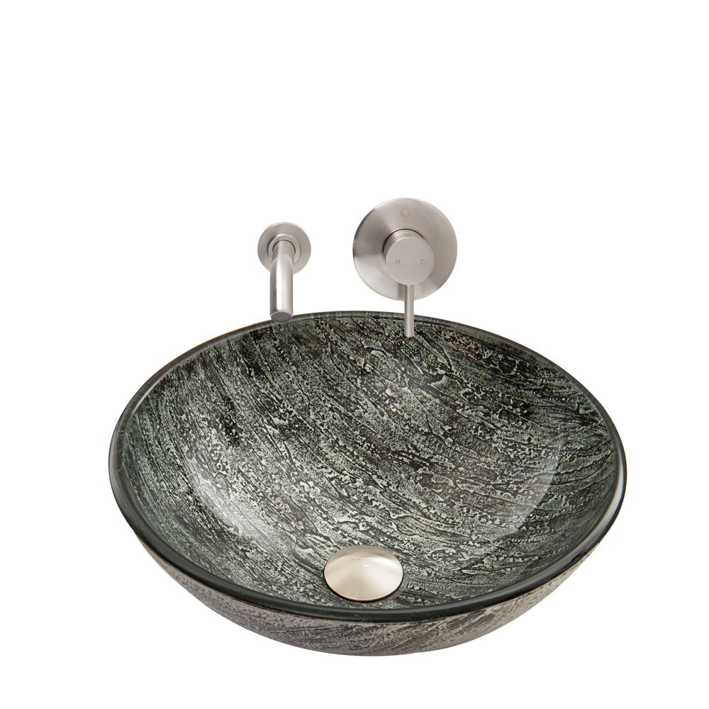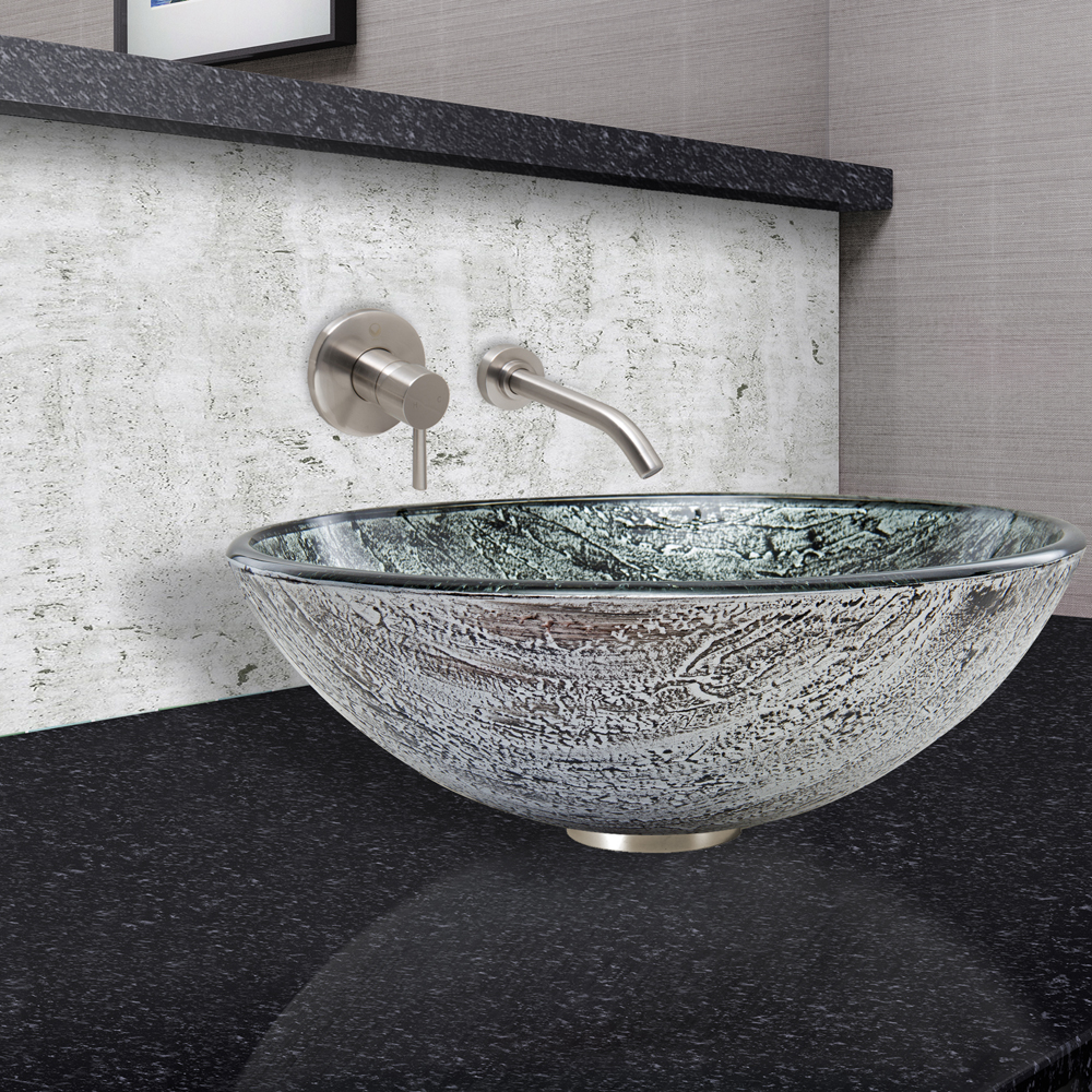 The VG07050 Titanium glass vessel bowl features a mixture of black and silver, sparkling like brilliant layers of titanium.
