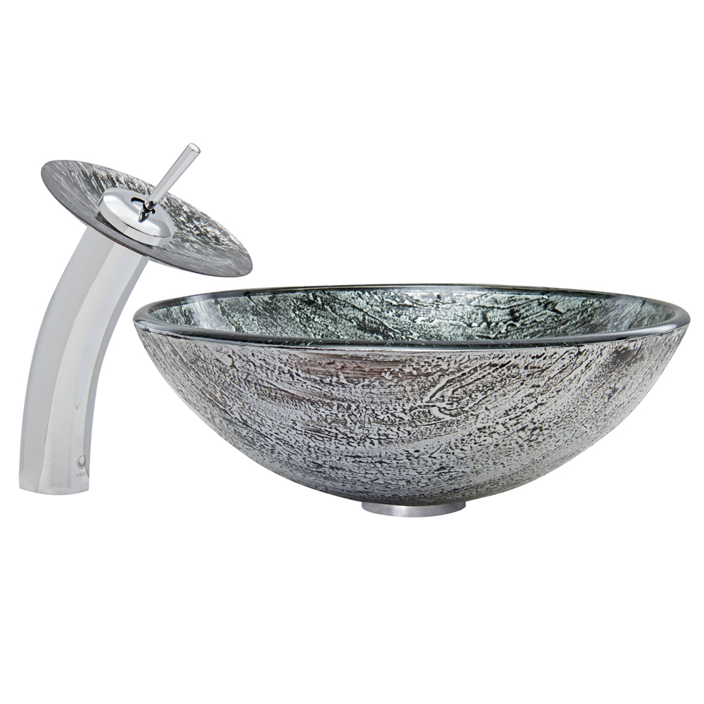 The VIGO Titanium Glass Vessel Sink and Waterfall Faucet Set in Chrome Finish will make your bathroom shine bright.