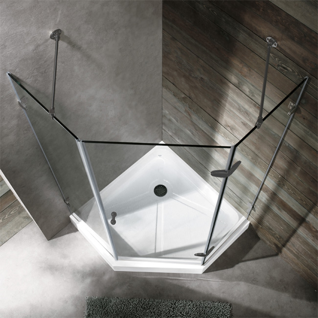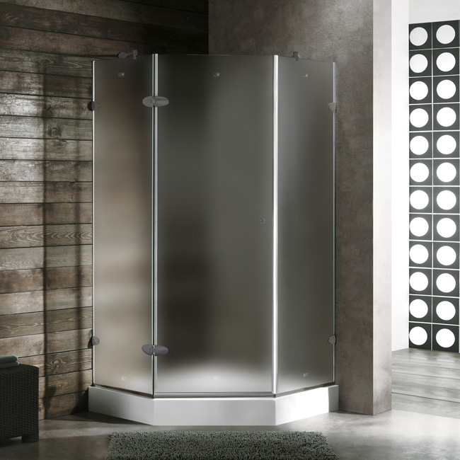 Both dramatic and space-saving, the Vigo frameless neo-angle shower enclosure creates a beautiful focal point for your bathroom.