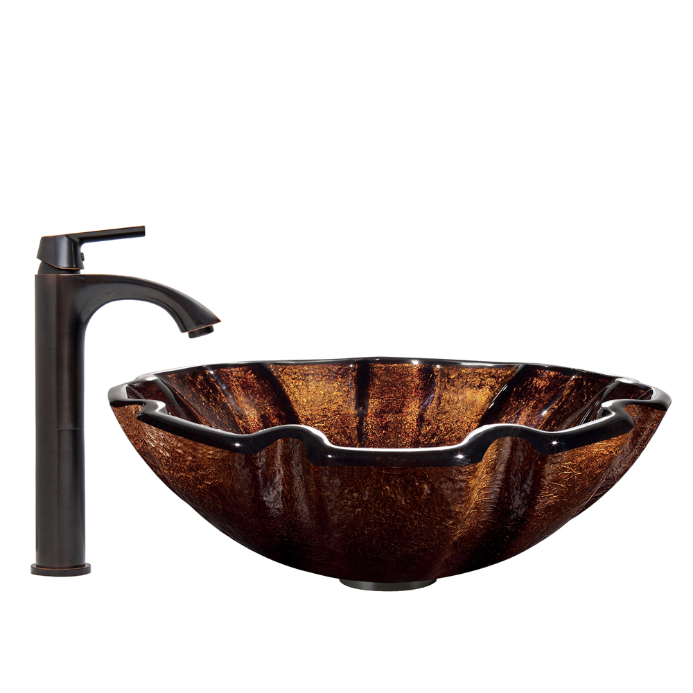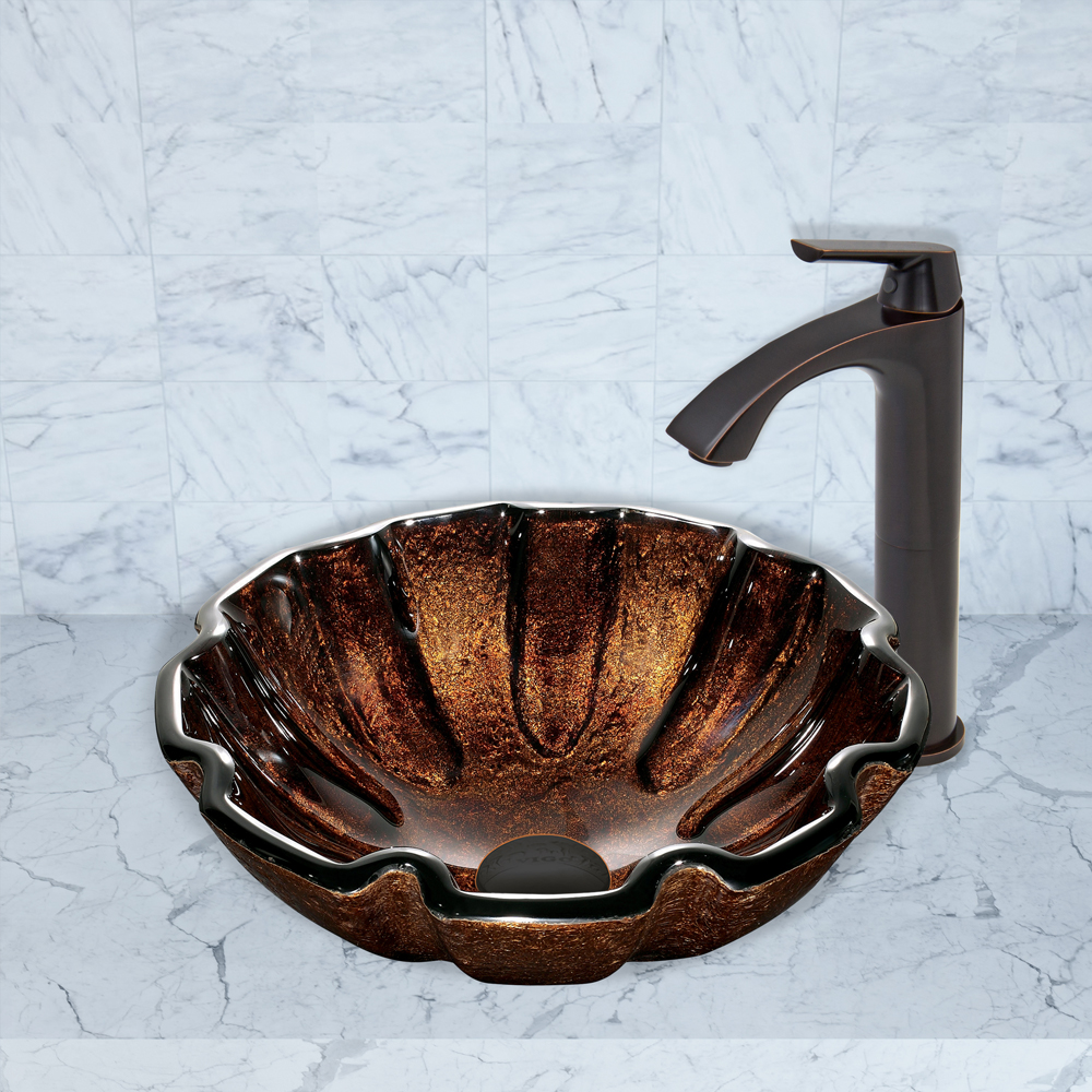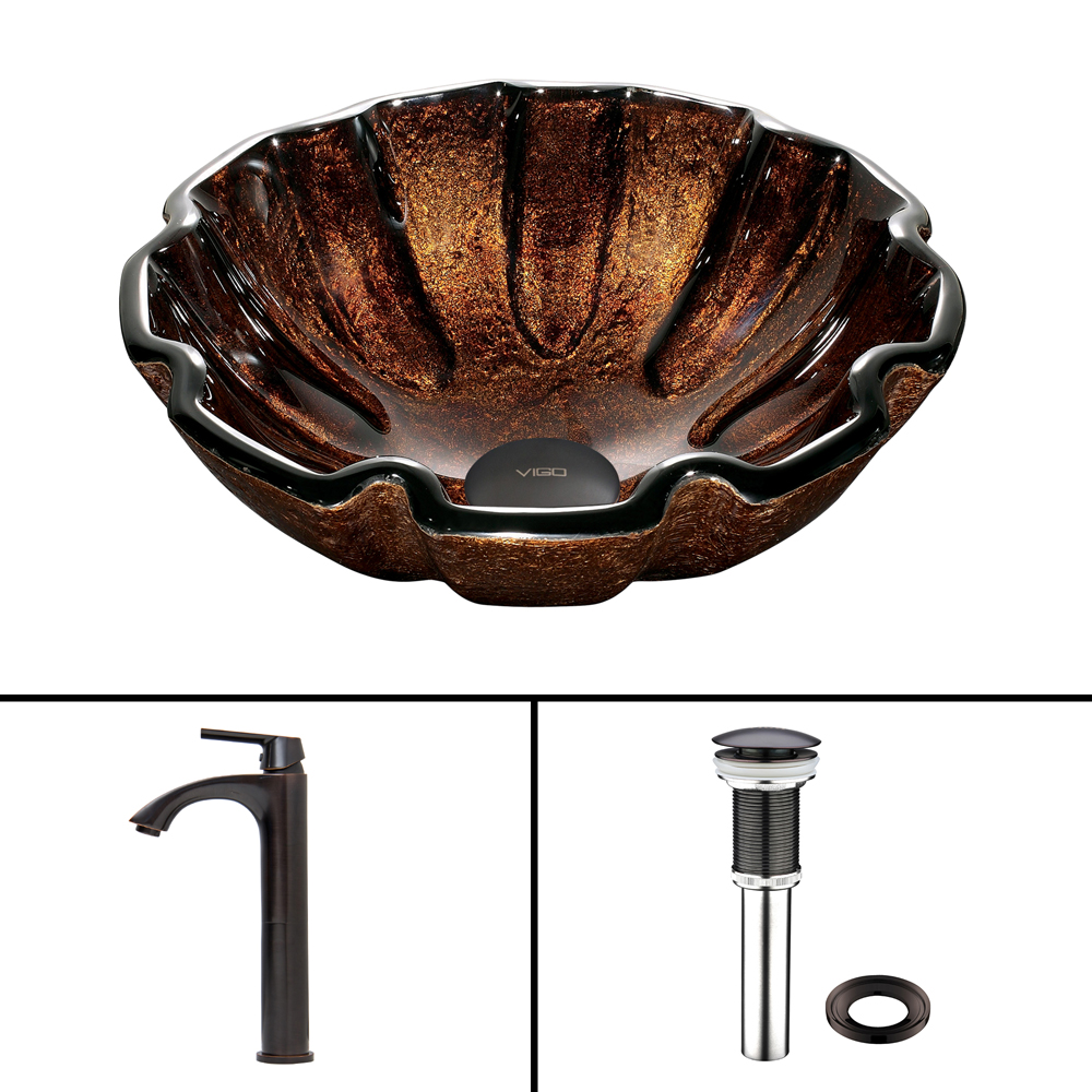 The VIGO Walnut Shell Glass Vessel Sink and Linus Faucet Set in Antique Rubbed Bronze Finish will bring new life to your bathroom.
