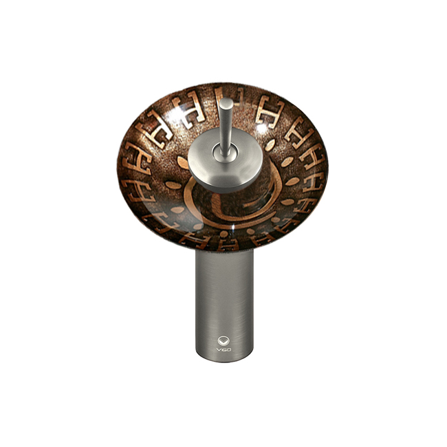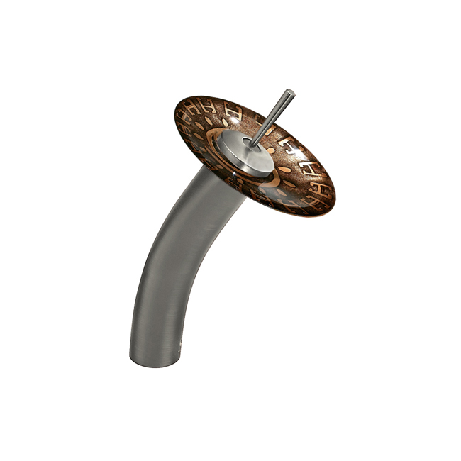 The VIGO Single Lever Waterfall Faucet in Brushed Nickel features an Aztec glass disc